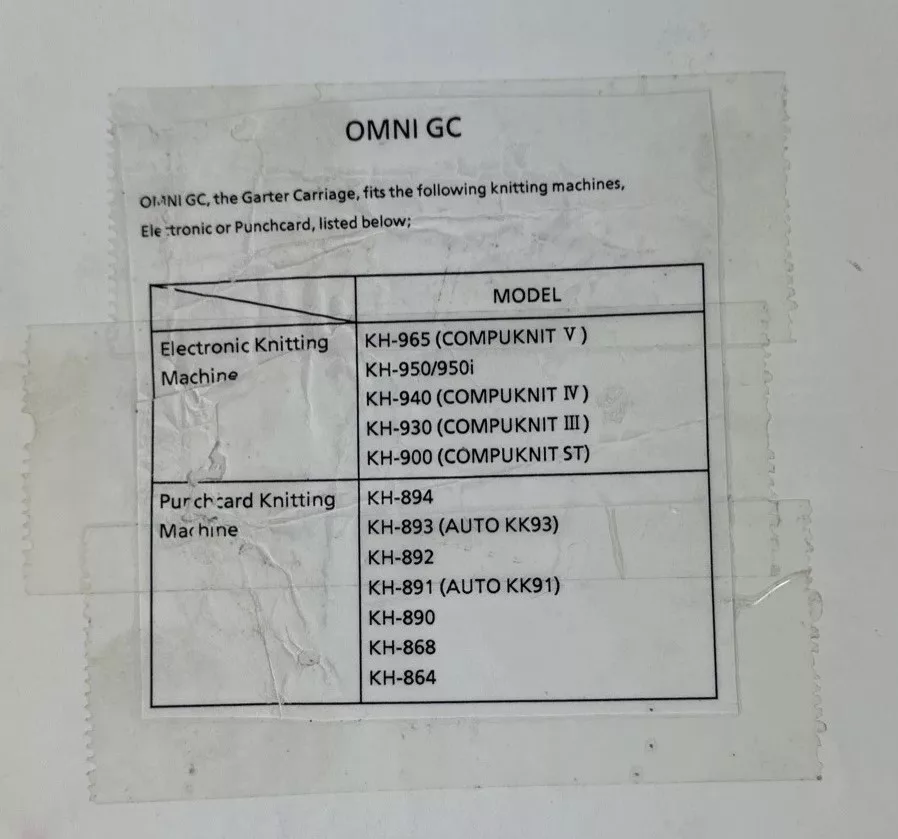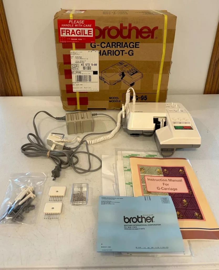 Brother Garter Carriage, G-Carriage, Omni Carriage or Chariot-G with the model KG-95 is the latest Garter carriage model released by Brother to support almost all (with the exception of Brother KH910) electronic Brother and Knitking knitting machines and some punchcard machines as well.