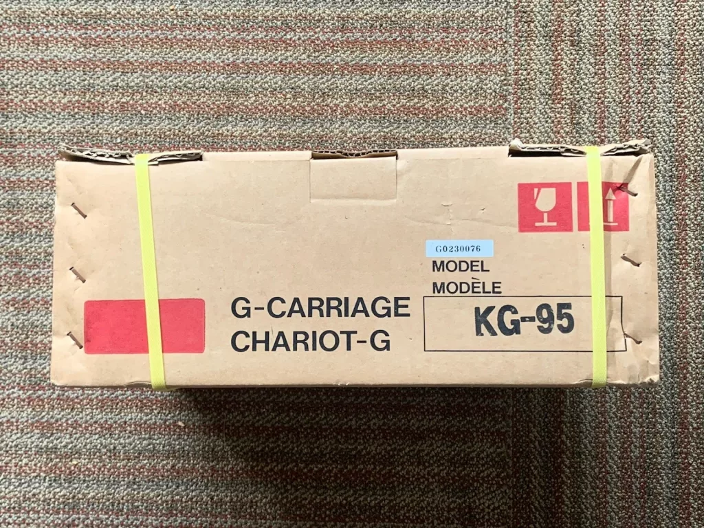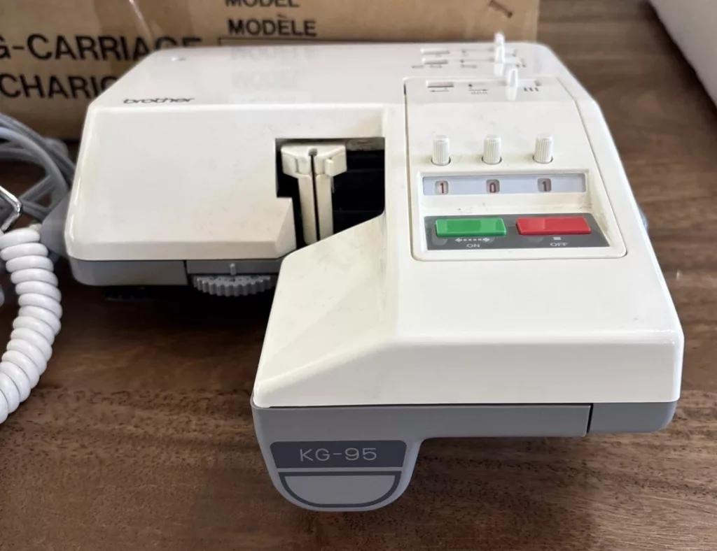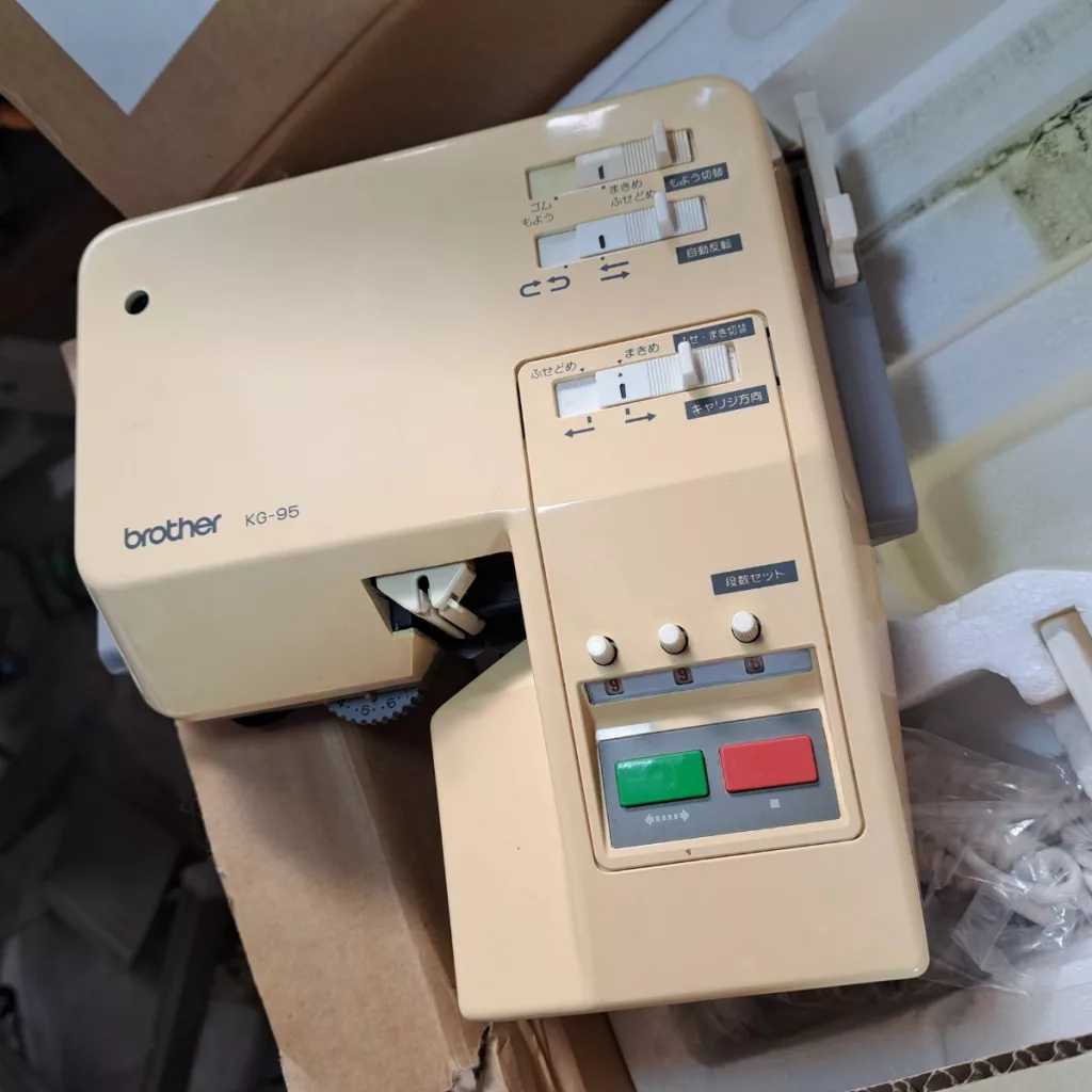 Brother KG95 garter carriages were released for Western and just Japanese markets. Thus, some carriages have only Japanese writing.