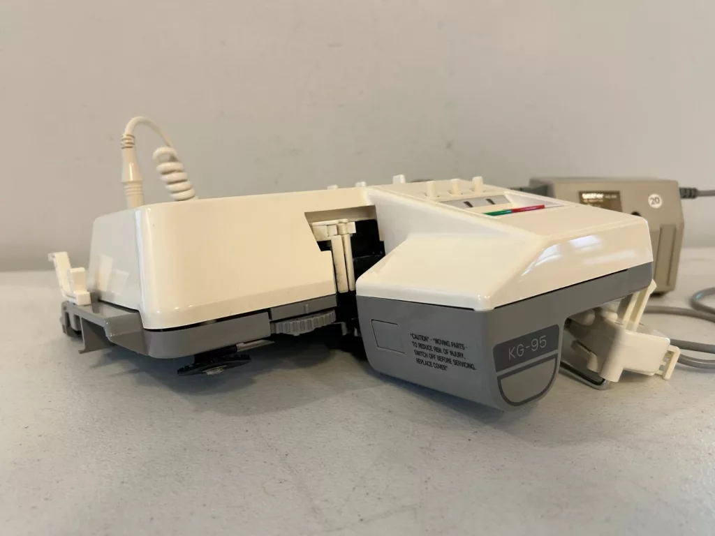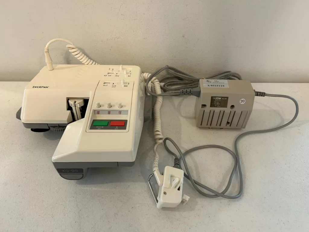 Notice that the manual shows a power supply without a cord branching to a machine (like the power supply for the Brother KG93), similarly to the power supply for the Brother KG88, KG89 and Brother KG88II, KG89II carriages).