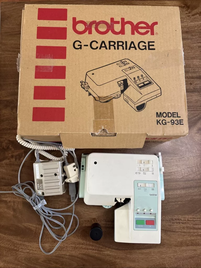 Brother KG93e is the same model garter carriage as Brother KG93. The difference is literally just the color of some of its parts. It is an anniversary edition and “e” stands for Eleganza.
