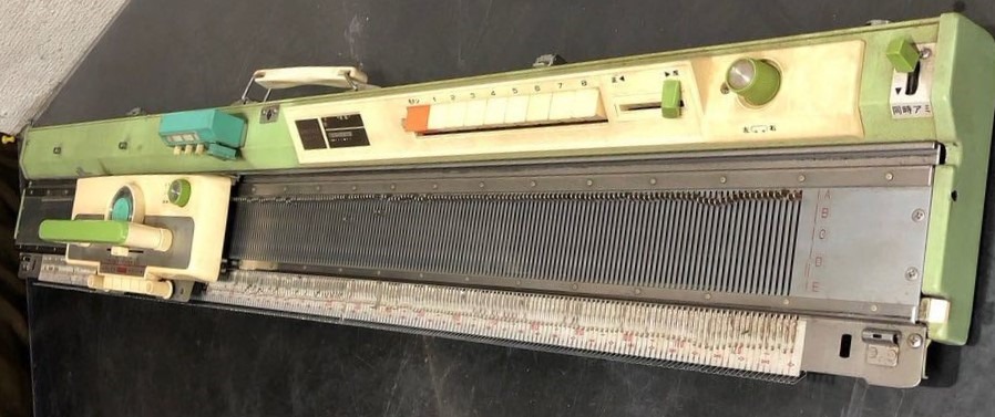 Japanese writing on this machine suggests that this model was targeted for the Japanese market. A similar model but for a European or North American model is Brother KH120. There are several indicators (read about some of them in the separate article dedicated to Brother KH120, Brother KR110 and KR120 ribbers) that despite being very similar, KH110 was released to the market at least a couple of years earlier than KH120. So the difference is not only geographical market distribution.