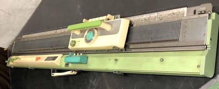 The machine features 260 needles and a pattern center. The pattern center is identical to the one in standard-gauge 8-pushbutton knitting machines, KH588, KH601 and KH710. Carriage functions (buttons, levers and knobs) are identical to those on the carriage for the Brother KH601 and KH800 knitting machines. So, overall, this machine’s functions are identical to those of KH601 but the needle size and the distance between the needles are different. All patterning capabilities are similar to standard-gauge Brother knitting machines. Details of fair-isle knitting for this machine, especially how to insert the second yarn into the side yar guide, are very similar to the KH800 knitting machine, which is described well in my video and blog.