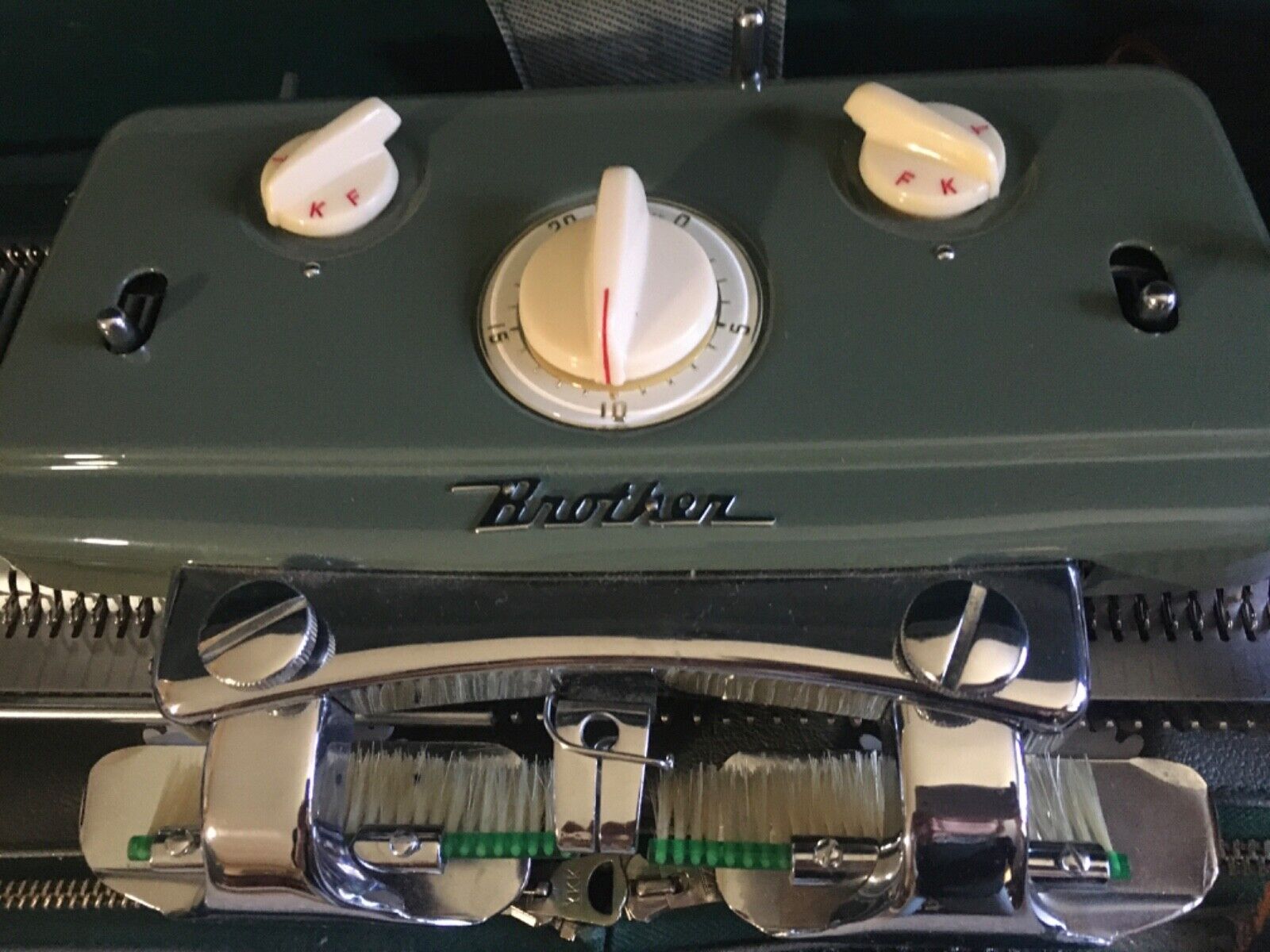 Brother KH212 knitting machine is a standard-gauge (4.5 mm) knitting machine with 190 needles. It was released to the market in 1957 and it is a true vintage beauty.