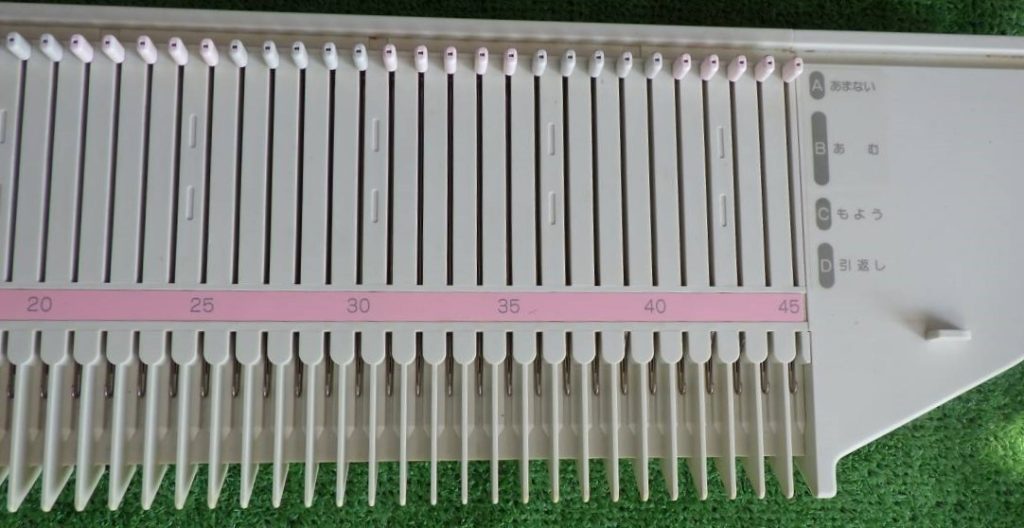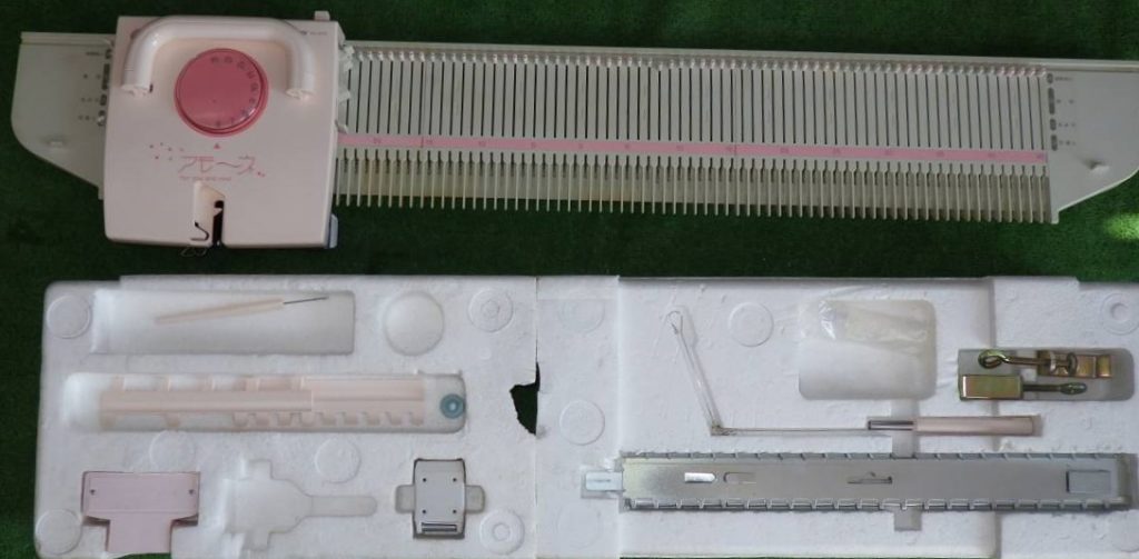 It has 90 needles. Just judging by the pictures, large needles and spacings, it is either a mid-gauge or bulky machine. Some sources claim that it is convertible but I did not see any pictures of this machine showing additional panels like other plastic models. For example, the packing setup of the convertible Brother KH360 has slots in the Styrofoam for the additional panels and in the packaging of KH370 I do not see any.