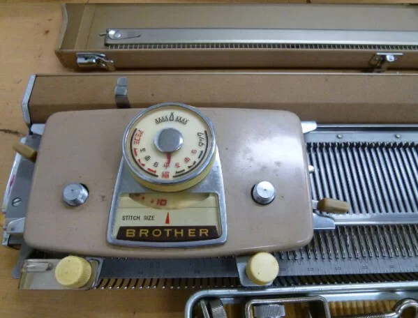 Its vintage look is similar to the earlier manual-only models: with metal unfolding flaps like KH311. The carriage also looks vintage, but, to the best of my knowledge, not very similar to any of the Brothers’ earlier knitting machine models I found so far.