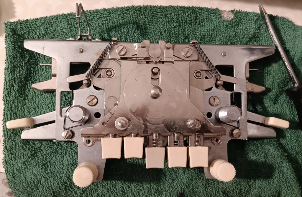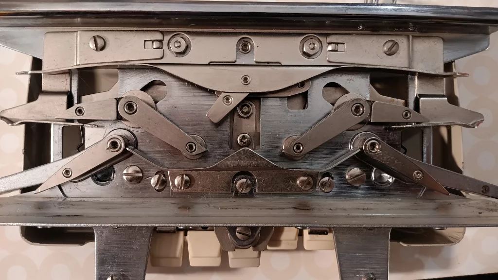 I liked how easy it was to remove (and then put together again) the end caps to deep-clean the machine, to access needle springs to adjust them and just to see whats going on inside the machine. The end caps are metal and are screwed into the sides. I suspect that the manufacturer started making machines (mostly after early 1970s) with less metal to make them lighter and maybe more affordable.