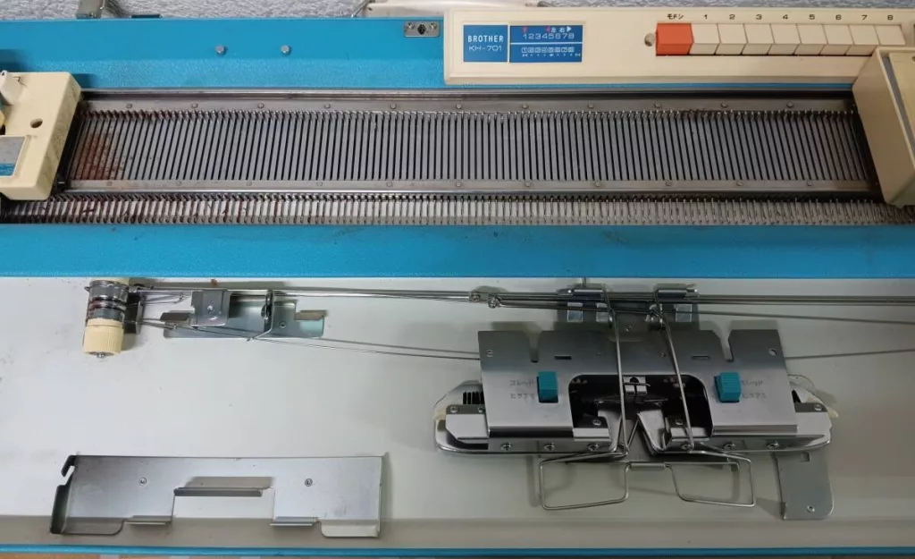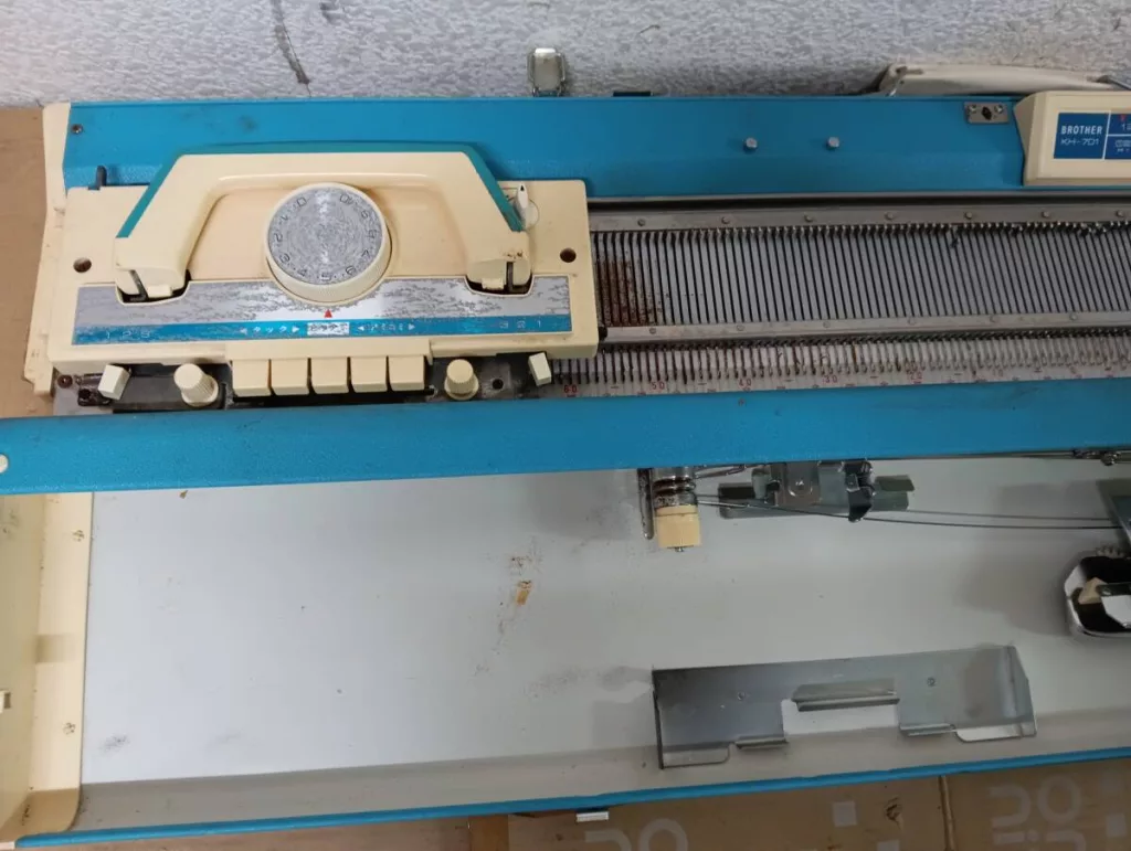 I already described in detail the features of 8-pushbutton machines in other posts. Brother KH701 is the closest to Brother KH710. Other standard-gauge 8-push button knitting machines are Profile 552, KH560, KH561, KH571, KH580, KH581, KH583, Profile/KH 585, KH587, KH601, KH705, KH710 and Brother/Genie KH710. Brother 8-pushbutton knitting machines are very often available in my store for purchase.