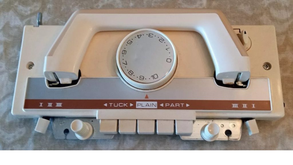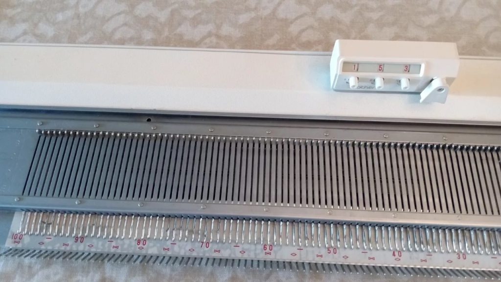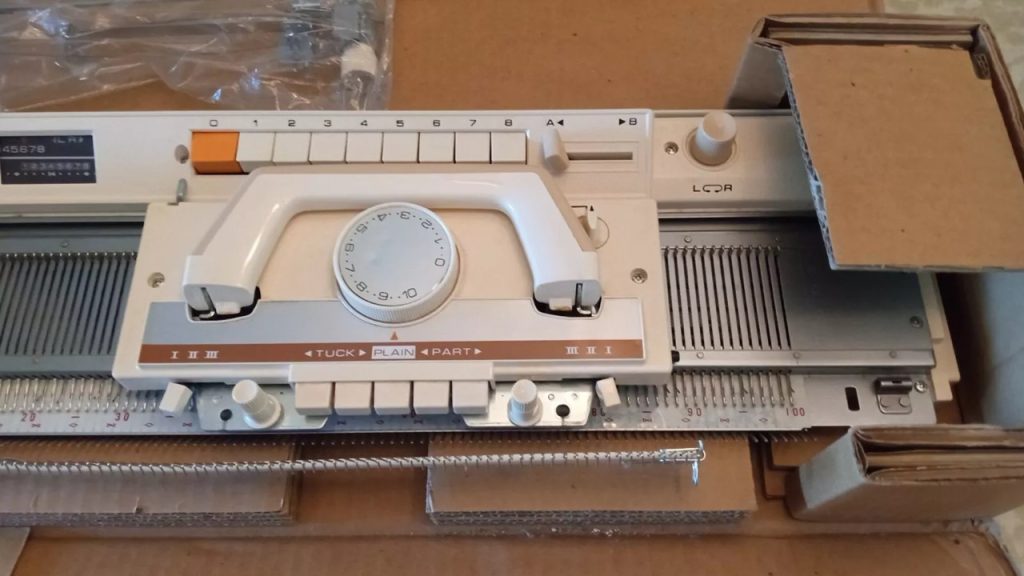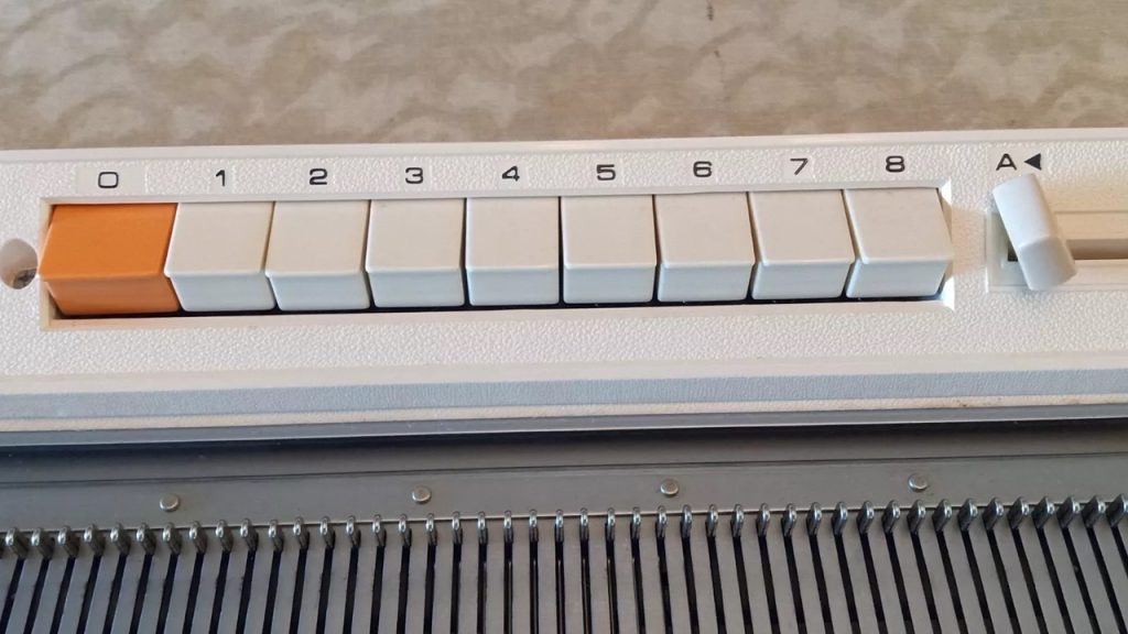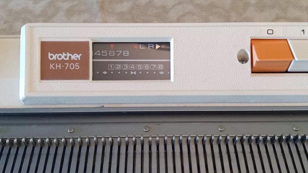 Brother KH705 knitting machine is a standard-gauge knitting machine with patterning capabilities performed by 8-pushbutton mechanisms and a control center. It is identical to the Brother KH710 knitting machine.