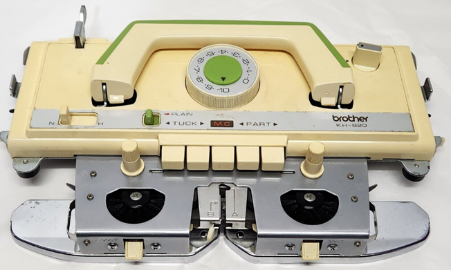 Brother KH820 knitting machine appeared on the market in 1974. It is a standard-gauge (4.5 mm) knitting machine with 200 needles.