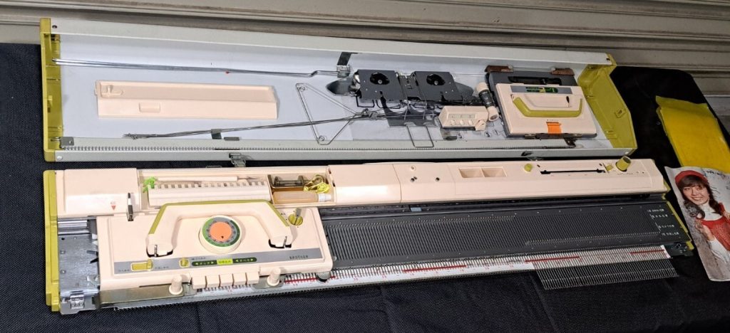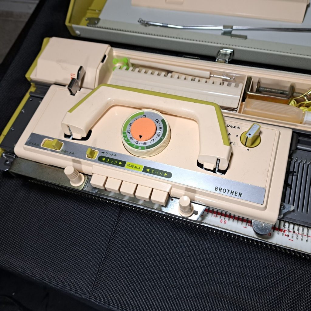 Brother KH850 knitting machine was manufactured for the Japanese market judging by Japanese writing on the carriage and the case.