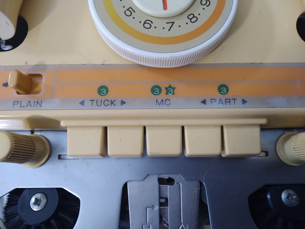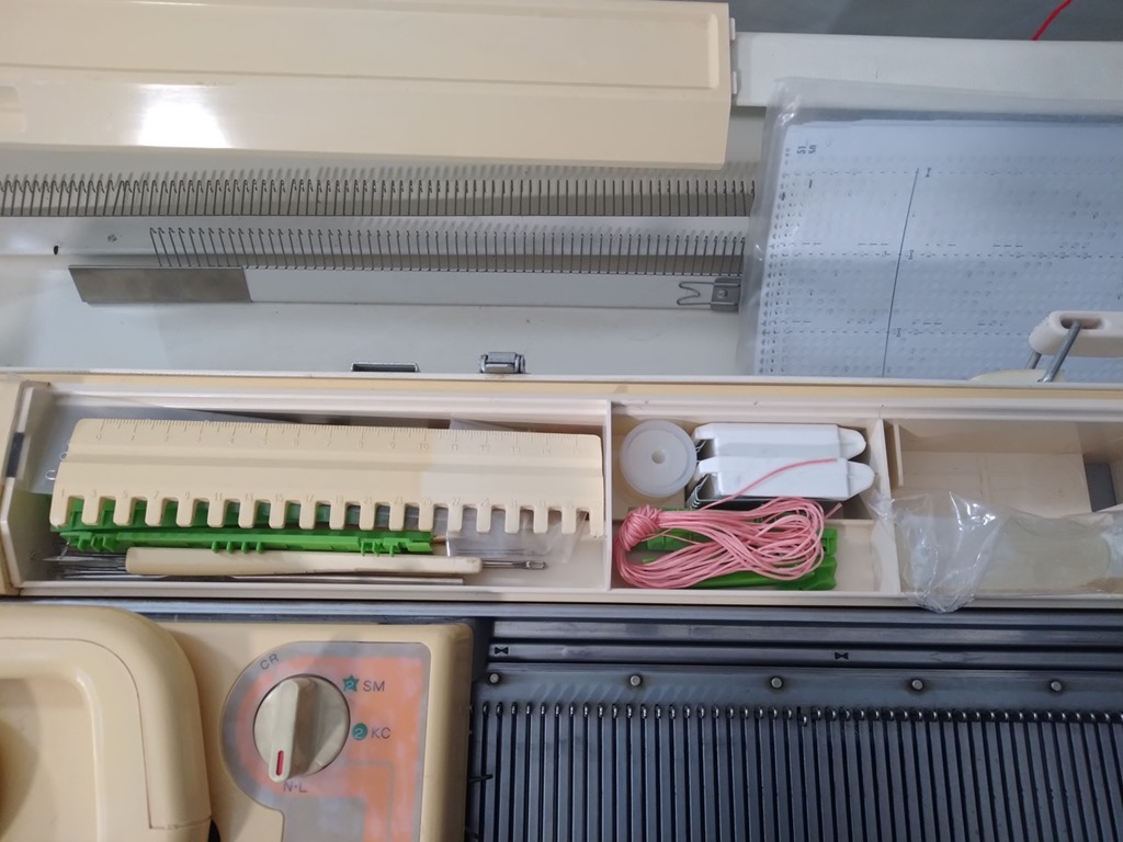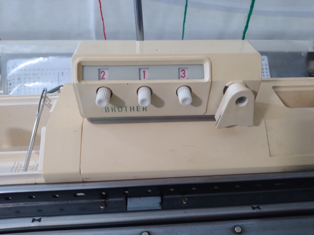 I like the position of the settings on the knob on this model a bit better than on its previous counterparts (like KH830): the first is NL position (plain knit), then single motif (SM) and then carriage release. It makes sense to me to make the carriage release setting last. However, KH830 has a “carriage release” setting first. However, it is simply a matter of comparison and a habit. Often knitters do not have the luxury to knit on several machines and settle with whatever machine they can get. Thus, whatever a knitter is used to determines their preference.