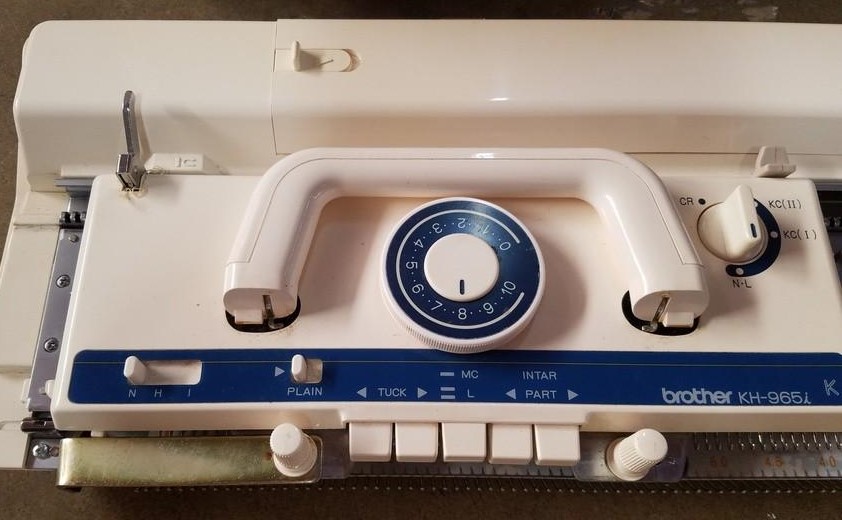 Brother KH965i was released to the market in the early 1990s (in 1992 or a bit later). It is a standard-gauge knitting machine with 200 needles situated 4.5 mm apart. This machine is capable of reading electronic patterns. The needle selection is done electronically as well.