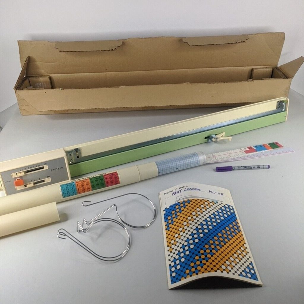 There is not much information on the Brother KL115 knit leader but it is very similar to the Brother KL116 charting device (so read my article on KL116). The minor differences I identified so far is that KL115 has no biding wire in its standard set of assesories and the setting plates look a bit different judging by the picture in the manual and the photographs.