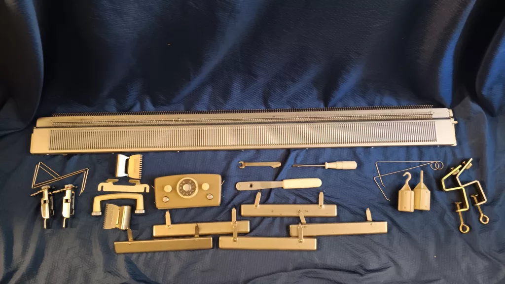 – When knitting on the full bed, it is hard to insert the original wire hangers (those with the triangles on the lower end to attach the weights). I recommend using the wire hangers from later models (with the circle at the lower section of the hanger, where the weights attach).