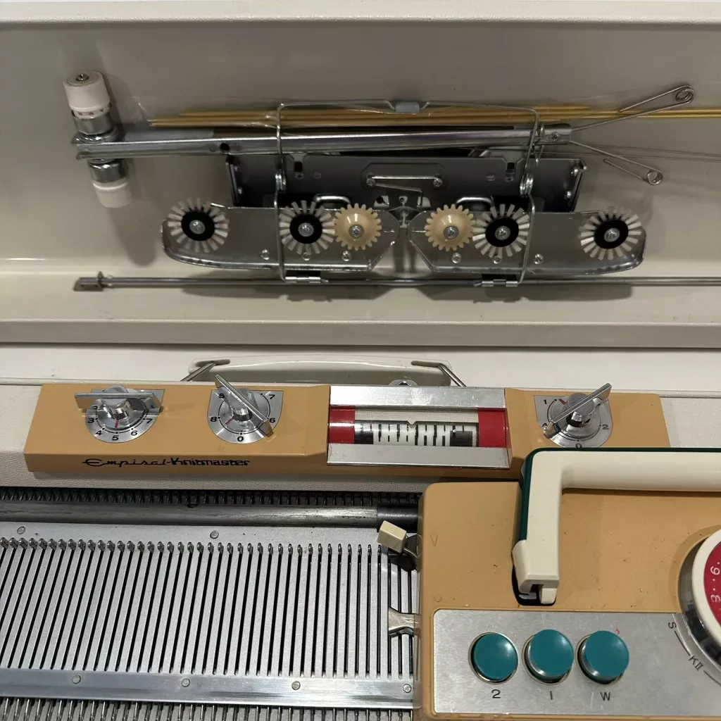 Empisal KnitMaster mod. 305 knitting machine is a turn-knob model: the needle selection is governed by pushing the three knobs on the front panel.
