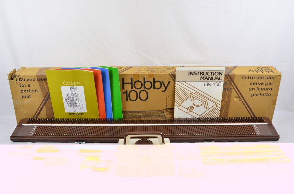 Empisal HK100 knitting machine is a 8 mm gauge knitter with a plastic bed. It is considered a mid- to bulky-gauge.