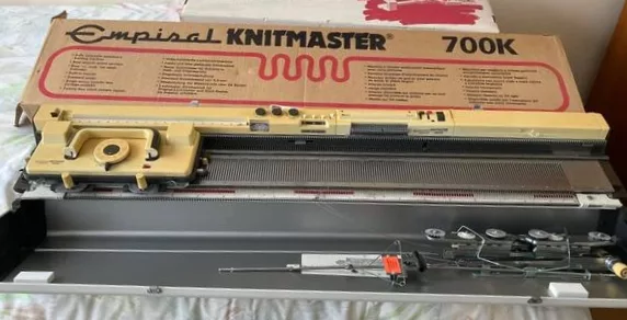 Empisal Knitmaster 700K might (or might not) be the same knitting machine as Empisal Knitmaster mod. 700. These wonderful machines have built-in knit leaders, intarsia capabilities and a tool box on top of the punchcard reading mechanism. Both machines are identical to other 700-series models: Silver Reed SK700, Silver Reed 700N, Studio mod. 700, Singer MemoMatic 700K, and Singer mod. 700. Thus, read the corresponding posts and watch the corresponding videos.