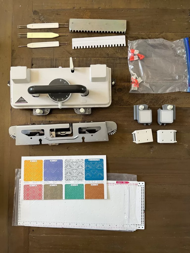 Empisal Knitmaster LC2 lace carriage fits most punchcard-based knitting machines manufactured by Silver Reed under Silver Reed, Silver, Empisal Knitmaster, Riccar, Singer and Studio brand names.