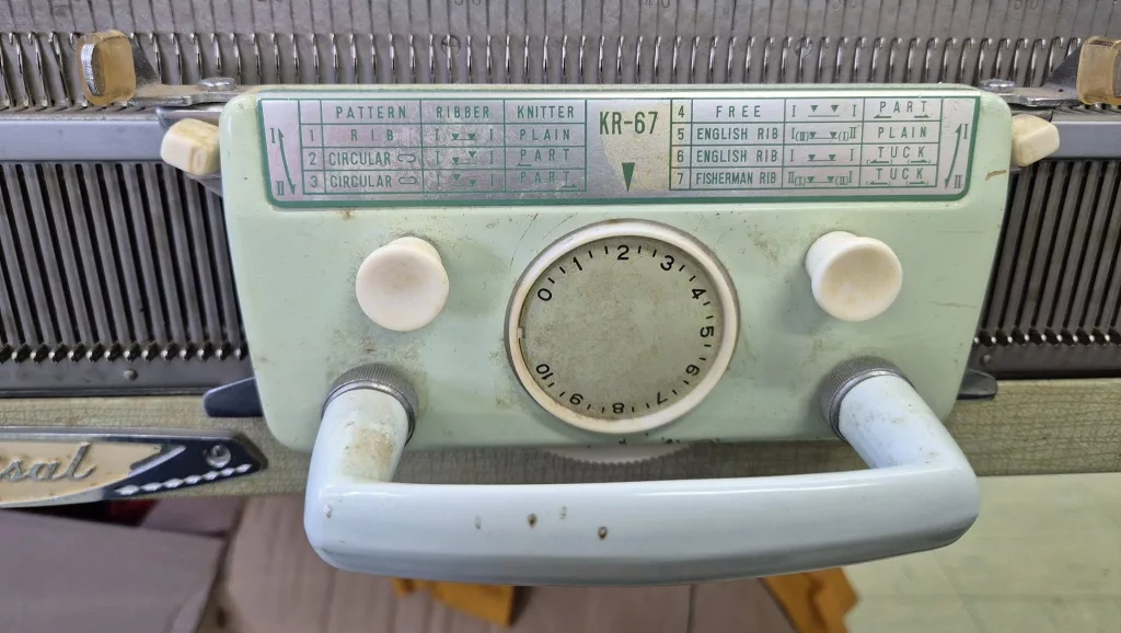 Empisal KR67 ribber is an attachment to an 8-pushbutton Empisal KH67 knitting machine. The ribber itself look idential to the Brother KR551 ribber. That makes me suspect that Empsal KR67 and Brother KR551 might be interchangeable. In fact, the carriage and the needle bed for the Brother KH67 machine look identical to the Brother Profile 551 (except for the buttons: only four on the Brother KH551 model versus eight buttons on the Empisal KH67).