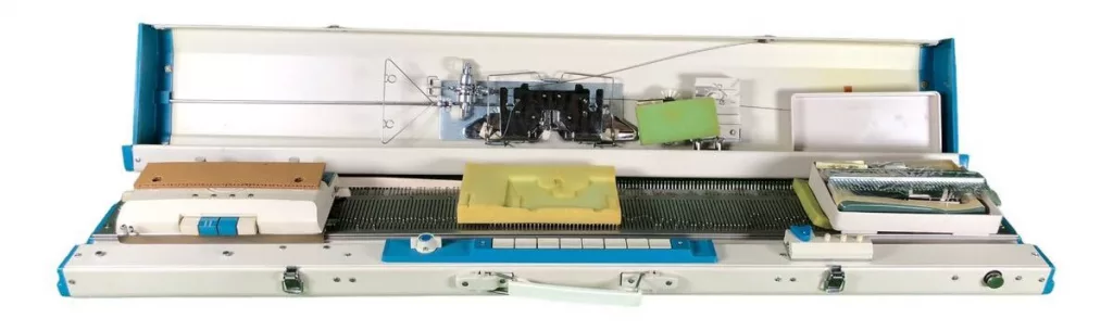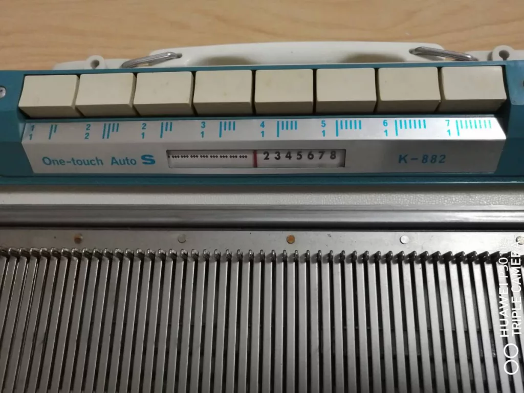 JUKI K 882 has 200 needles, 4.5 mm apart, which makes it a standard-gauge knitting machine.