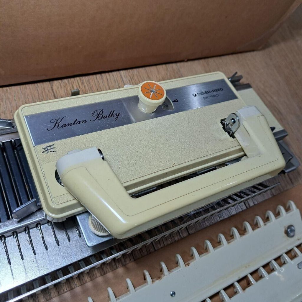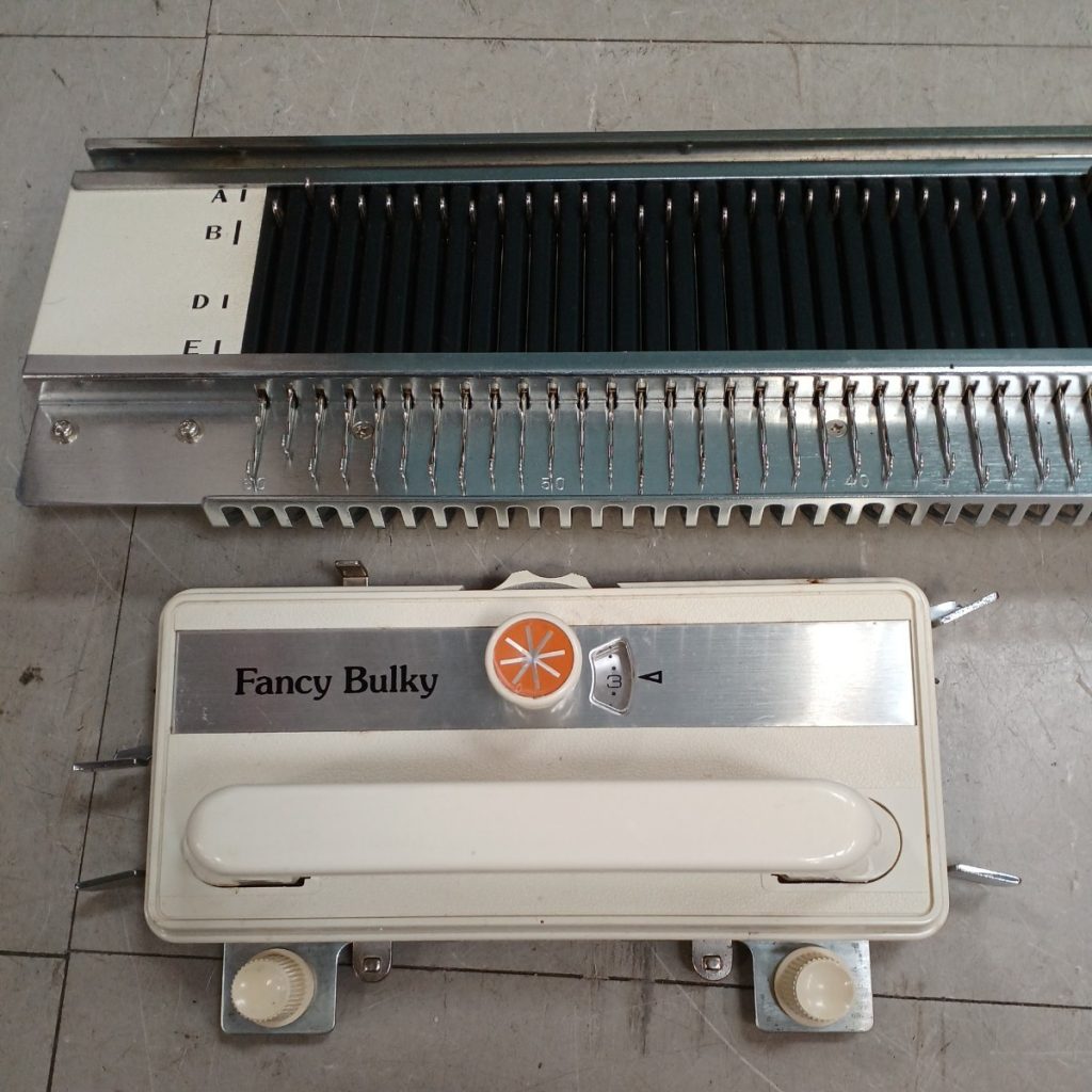 Kantan Bulky is the same machine branded as Silver or Silver Reed bulky (model numbers SK120), 8 mm gauge knitting machine. It is also known as Fancy Bulky.