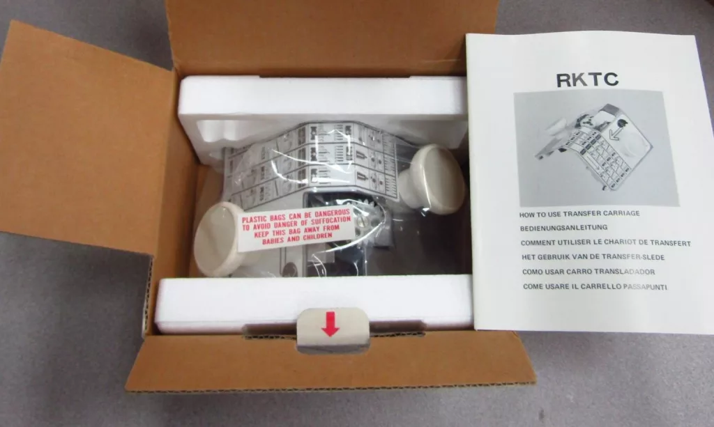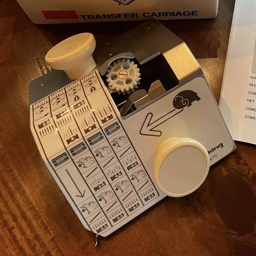 RKTC transfer carriage (the same as Brother KA-8300 carriage) assists in quick transfer of stitches from the ribber to the main bed. It is especially handy when a large number of needles is involved. It is also useful for small production knitters.