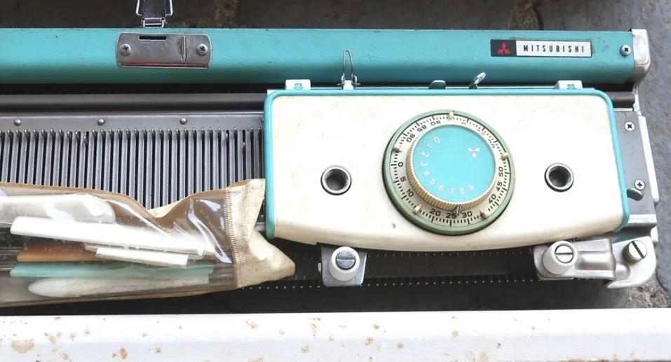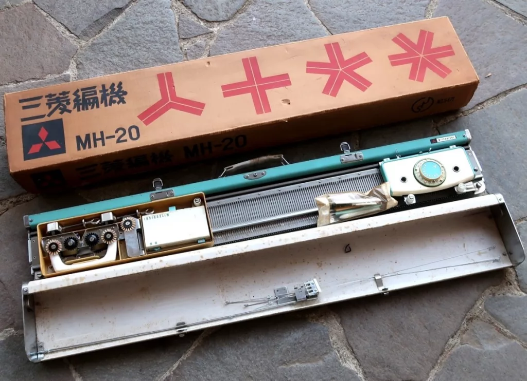 Mitsubishi MH-20 knitting machine is a standard-gauge machine with 200 needles. It is very likely a standard-gauge machine, thus, the distance between needles is 4.5 mm.