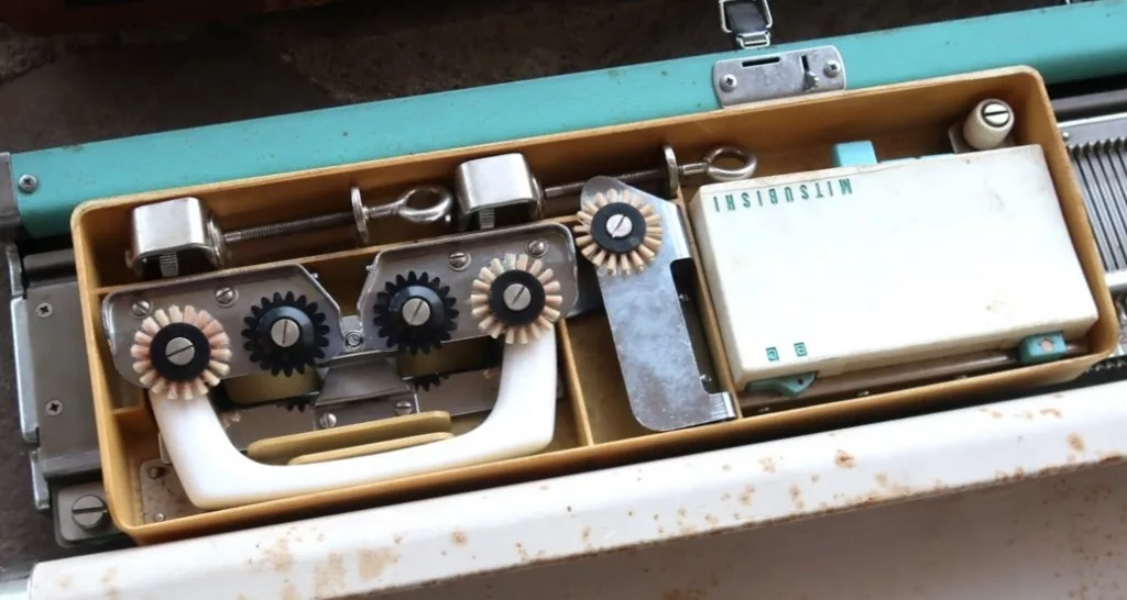 Similar to its earlier couterparts, Mitsubishi MH-15 and MH-16, the carriage of Mitsubishi MH20 is very simplistic and has a screw-on handle, which makes me think that the machine was manufactured somewhere in the 1960s or earlier.