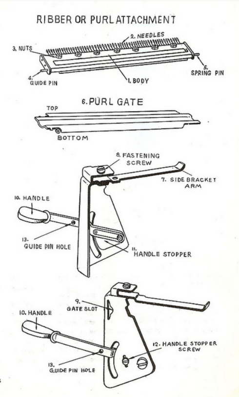 Some sources say that similar ribbers are used for the vintage knitting machines up to the model number KH218. For example, a manual describes that ribbers for machines KH212-KH218 are attached in a similar way: