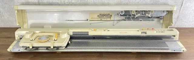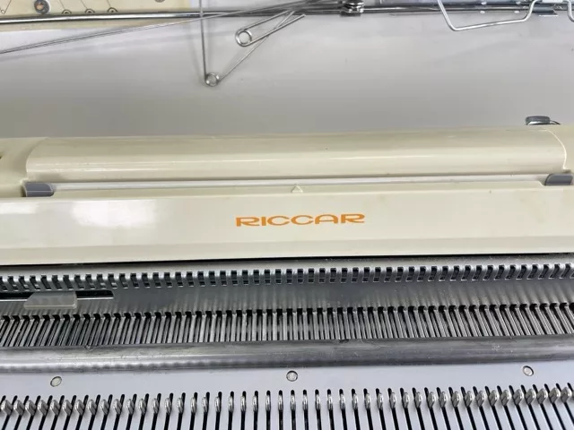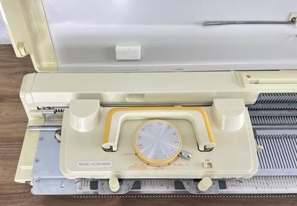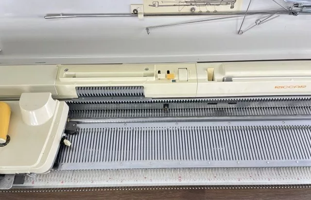 Riccar 709 is a punchcard-based standard-gauge machine with 200 needles, 4.5 mm apart. It has a built-in knit leader.