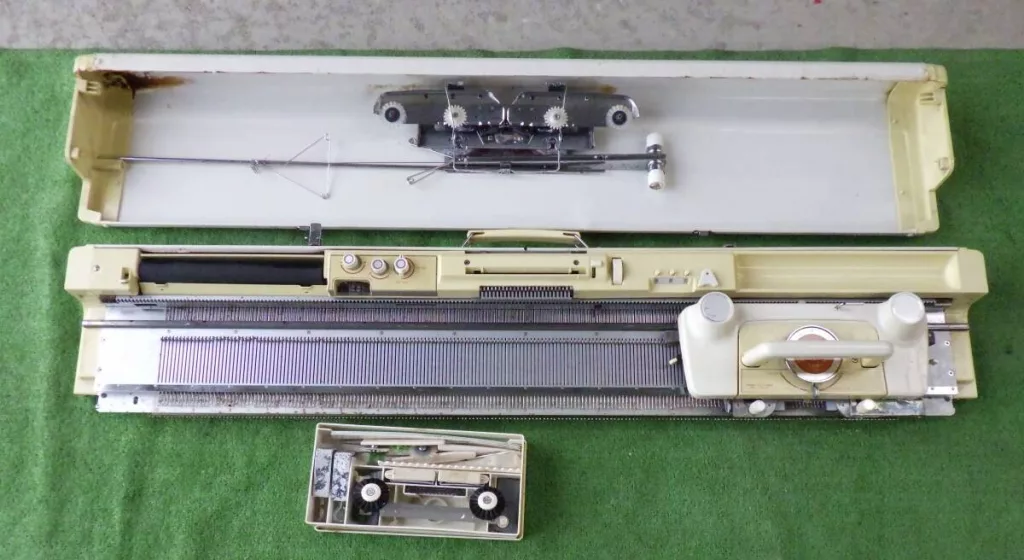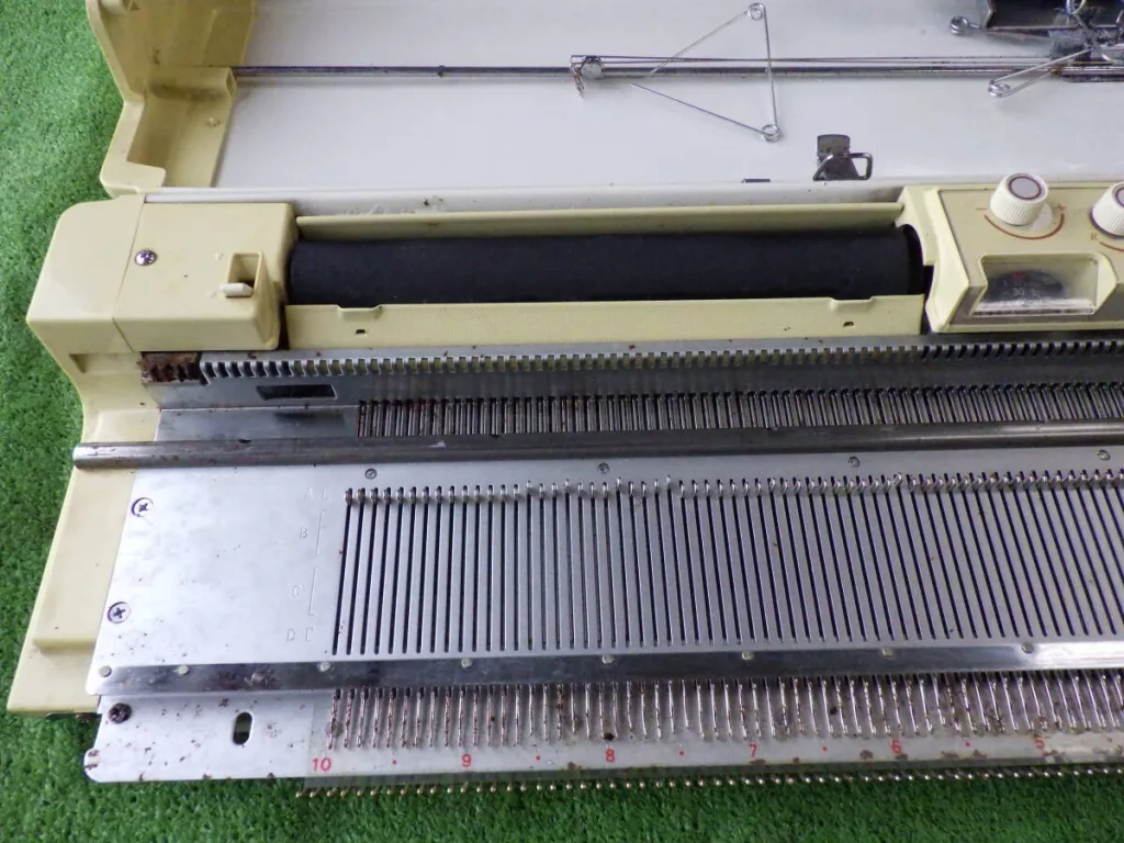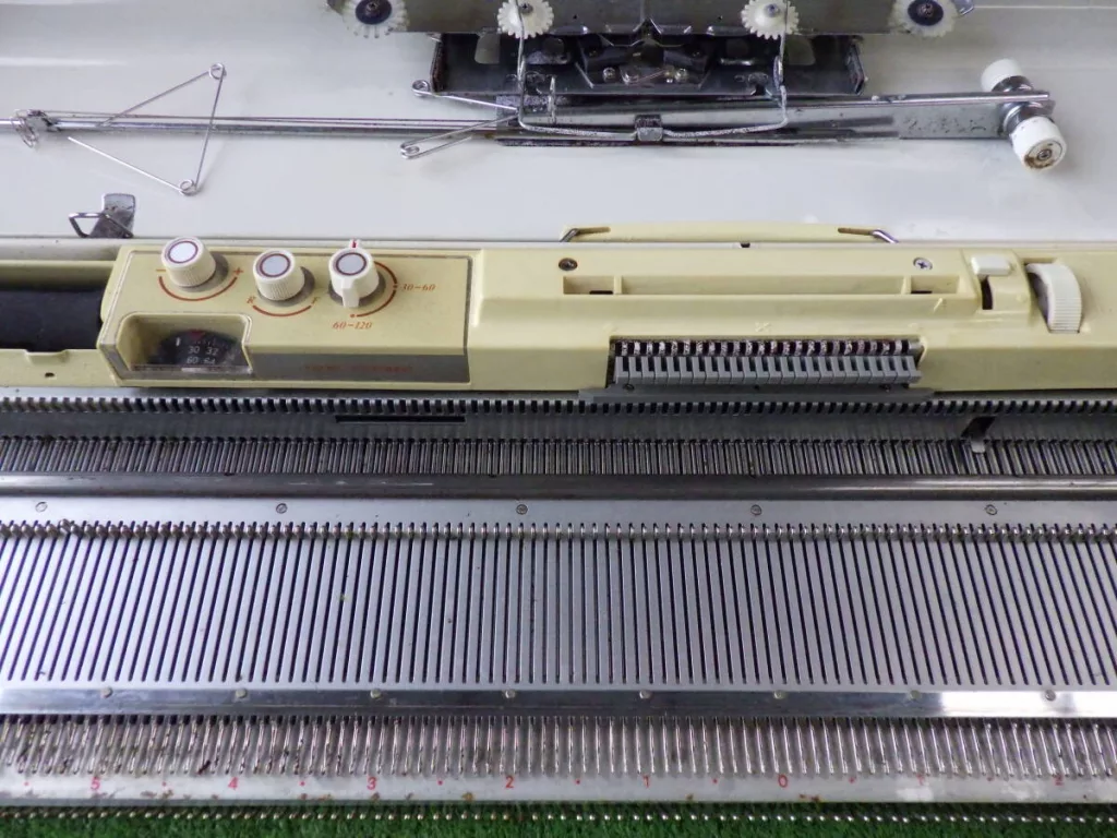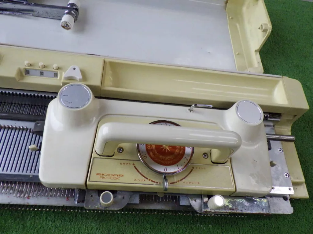 Riccar RK-705K knitting machine has 200 needles, 4.5 mm apart. This machine has punchcard reading capabilities, which allows to the needle selection according to the pattern on the punchcard.
