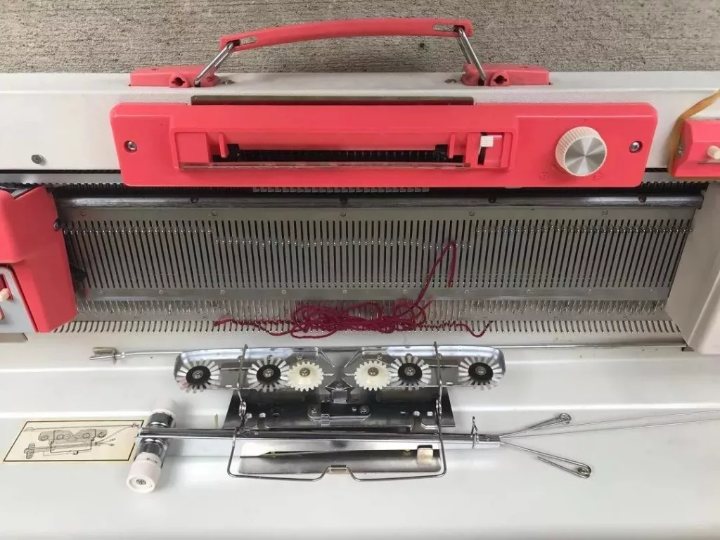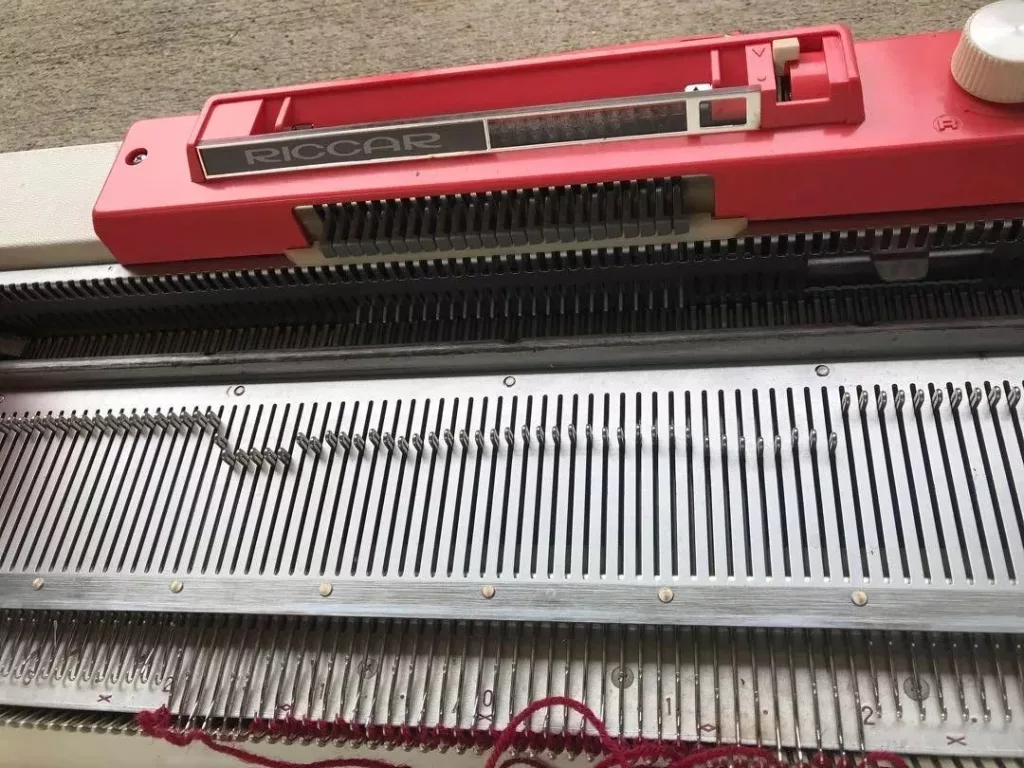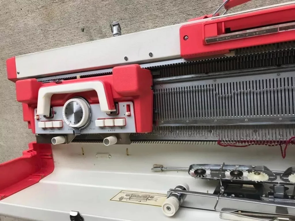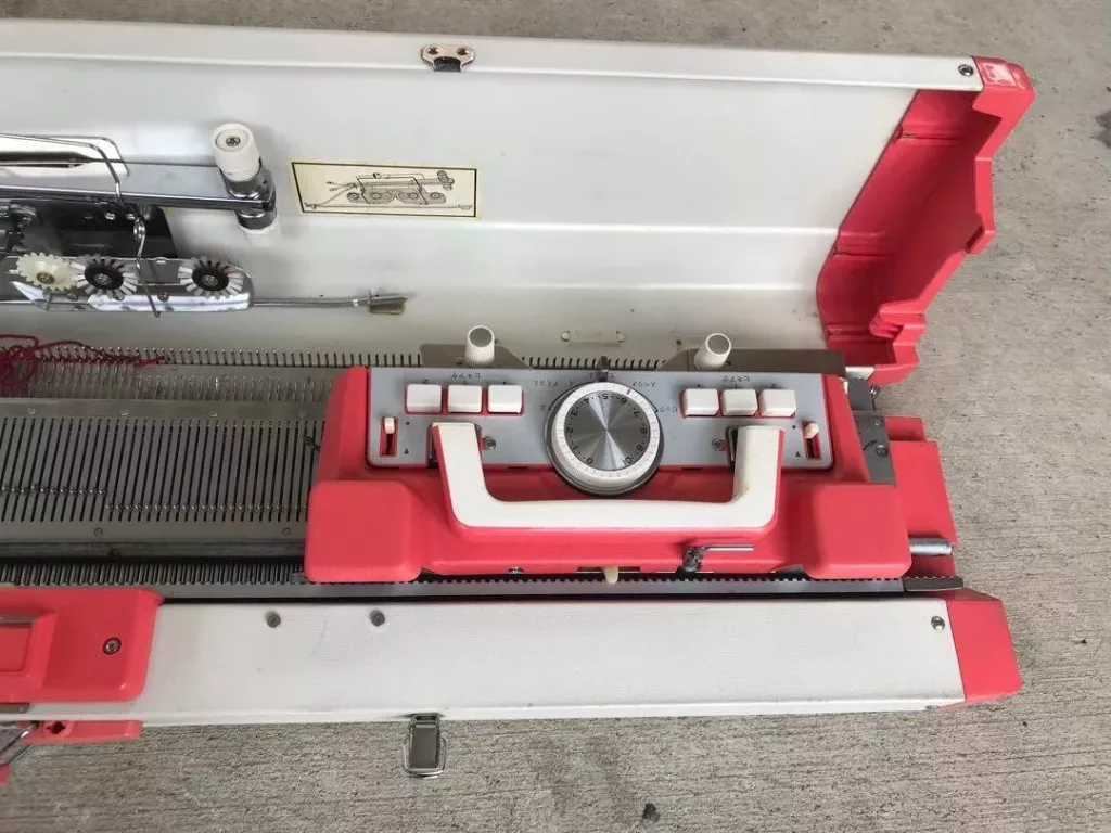 At first, I could not identify this beautiful white and red knitting machine, but later discovered that it is indeed Riccar RK-701. It was released to the market around 1967.