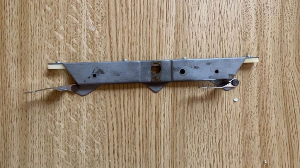 The major parts are the yarn changer itself, a connecting arm, and a needle guide.
