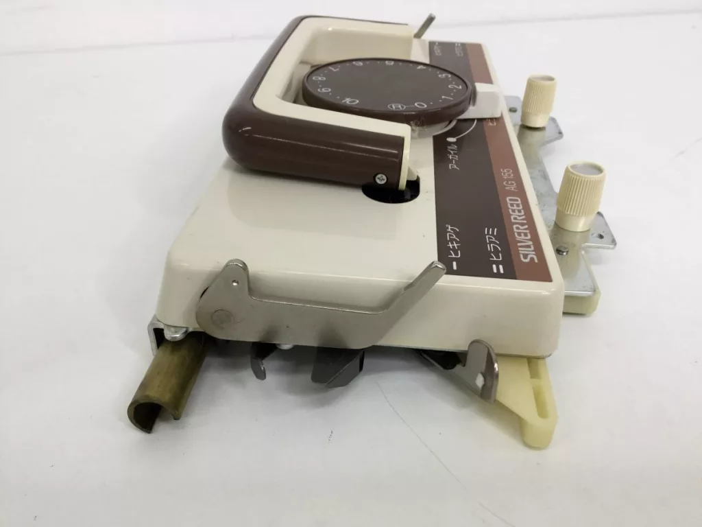 The handle is foldable, similar to most main carriages of Singer/Silver Reed/Empisal Knitmaster/Studio-based machines.