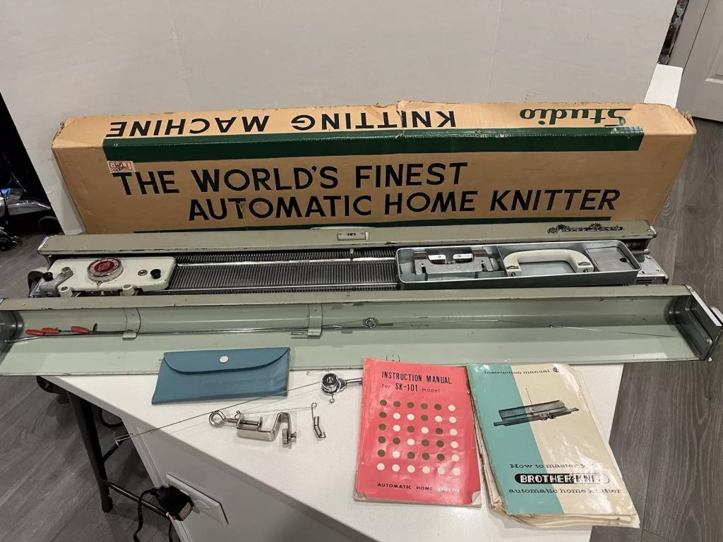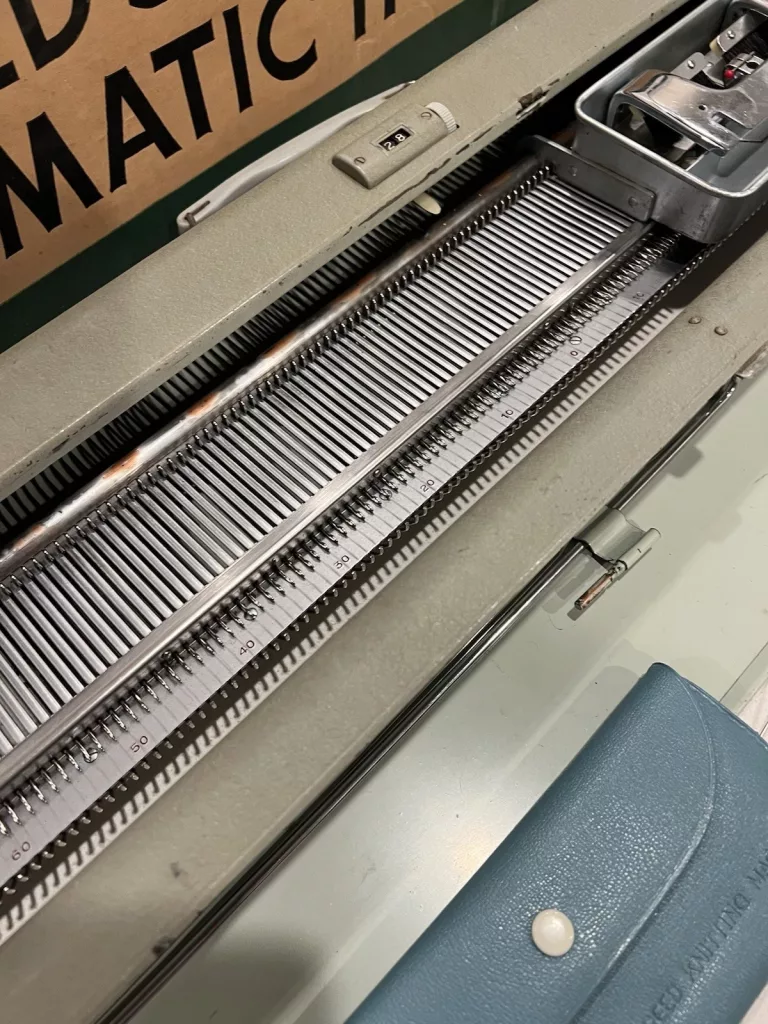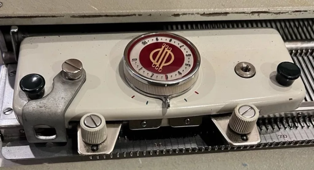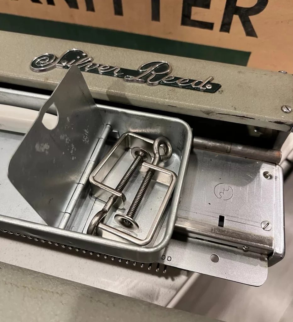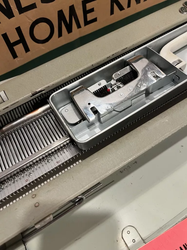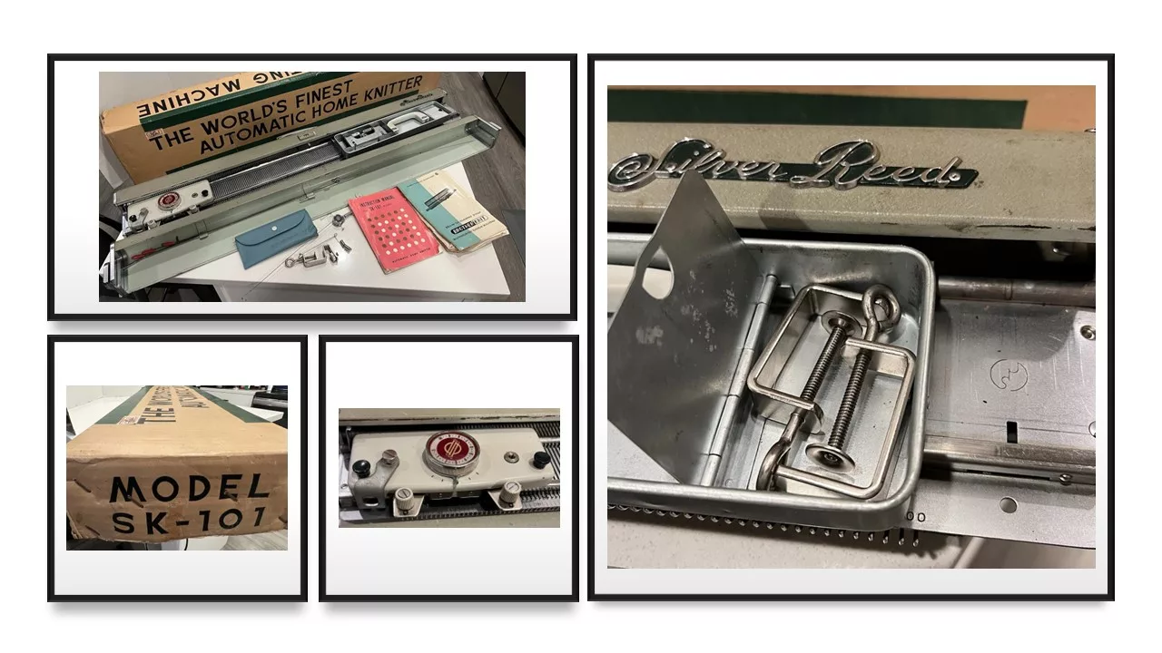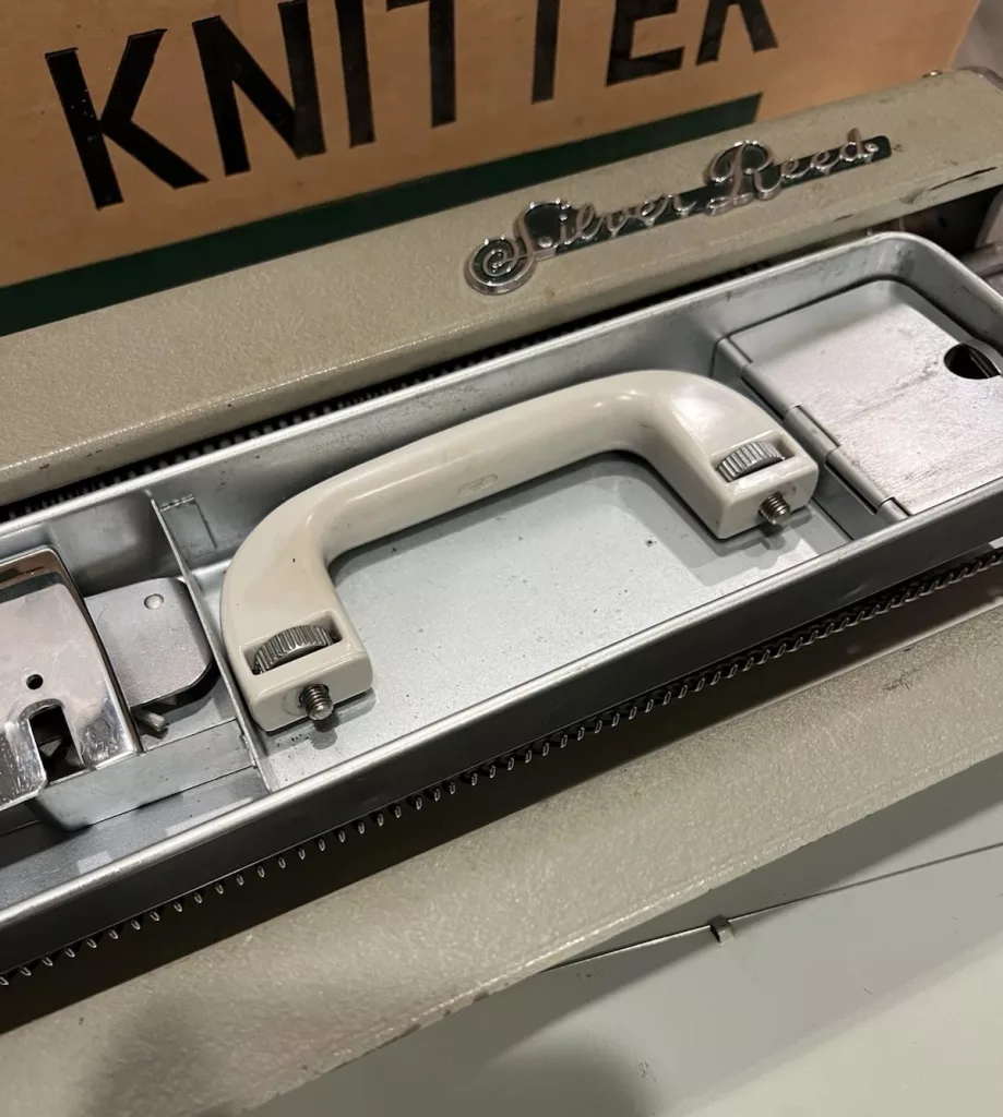 It has only basic/manual patterning capabilities. Despite having the same model number as Studio SK101 and Silver SK101, I see some minor differences: Silver Reed SK101 has a built-in row counter (not a slide-in as in Studio SK101 and Silver SK101), screw-on carriage handle, metal toolbox and potentially does not come with a mini carriage for needle selection (or maybe the specific machine below simply did not have it in its setup). Stay tuned as I am finding more. Although Studio SK101 and Silver SK101 have some outdated features themselves (e.g., unfoldable end caps).