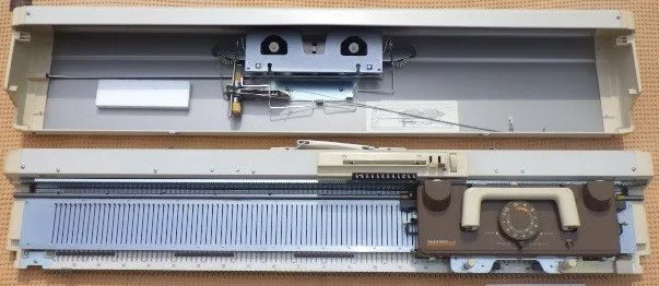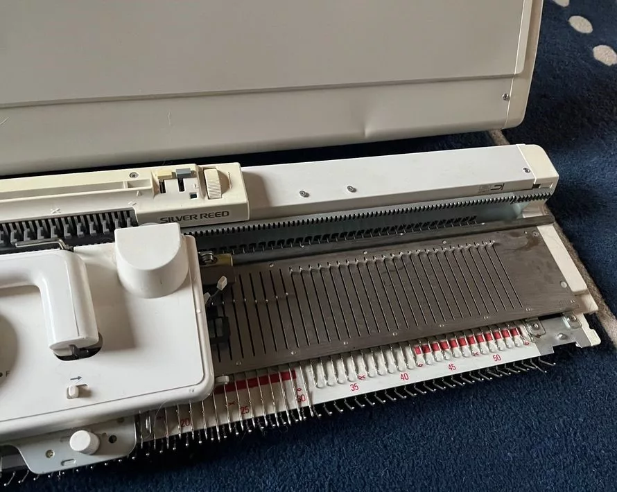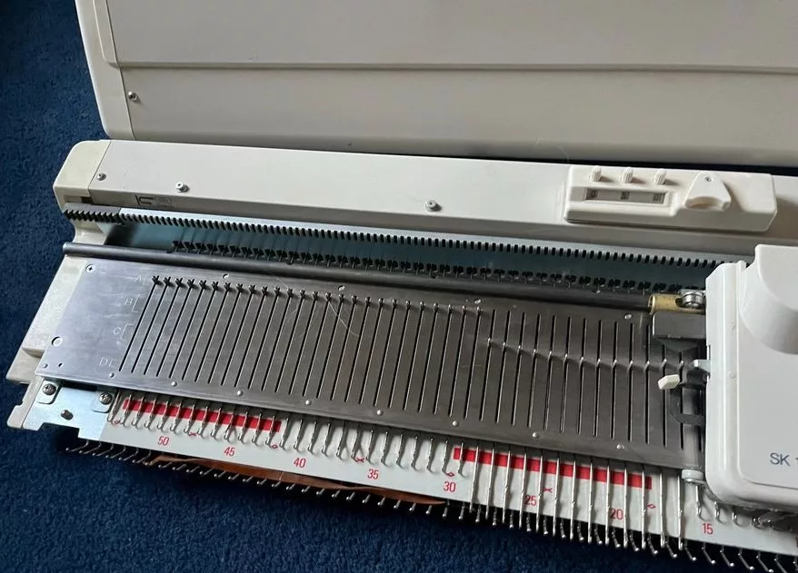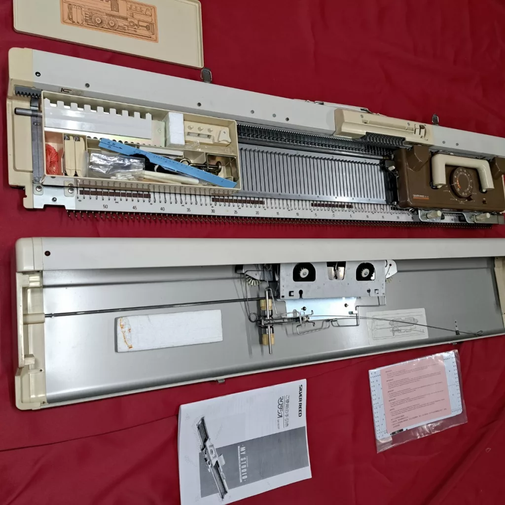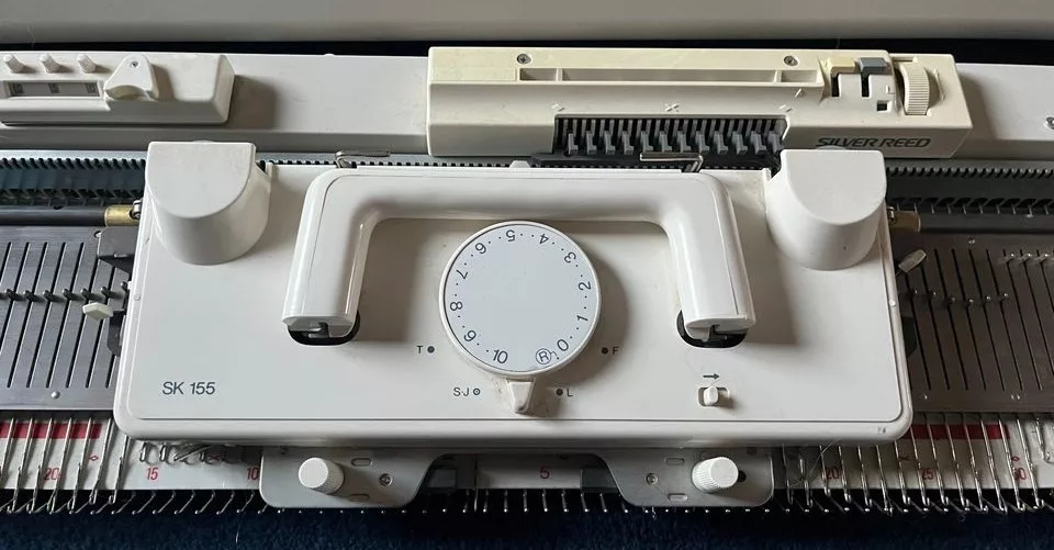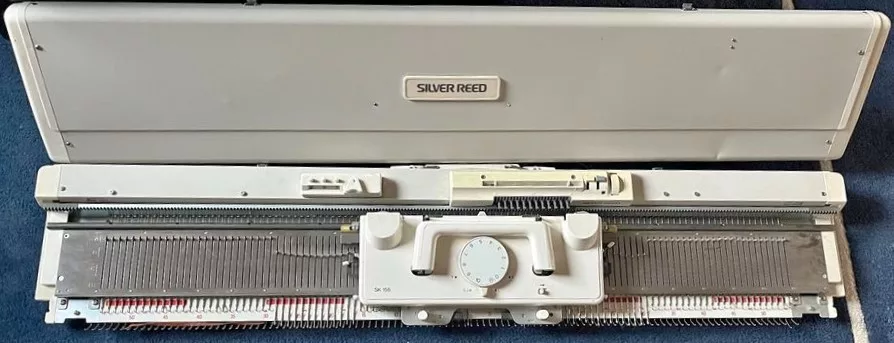 Silver Reed SK155 is a wonderful, bulky-gauge, knitting machine, with 100 needles, 9 mm apart.