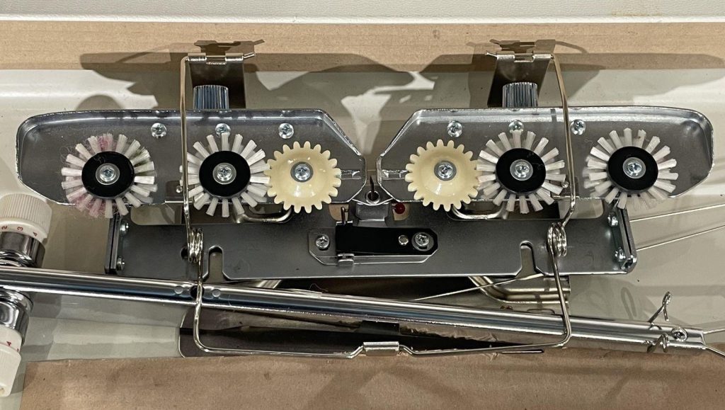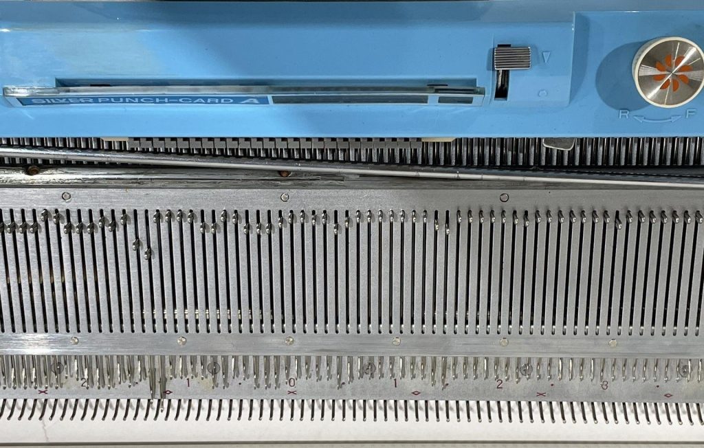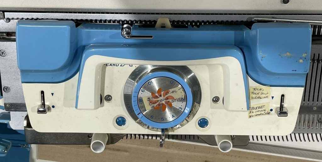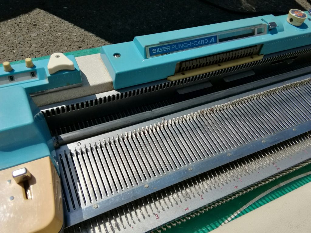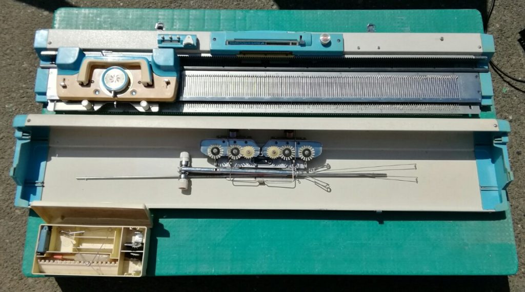 The carriages, especially when not in use, have problems typical for Silver/Silver Reed/Singer/Studio machines: the patterning drums “freeze up” and don’t move (which, however, can be fixed with enough Kroil oil and lubing).