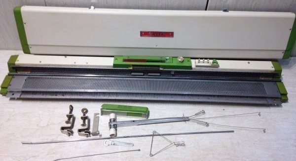 Silver SK313 knitting machine appeared on the market in 1970. It is a standard-gauge knitting machine with 200 needles, 4.5 mm apart.