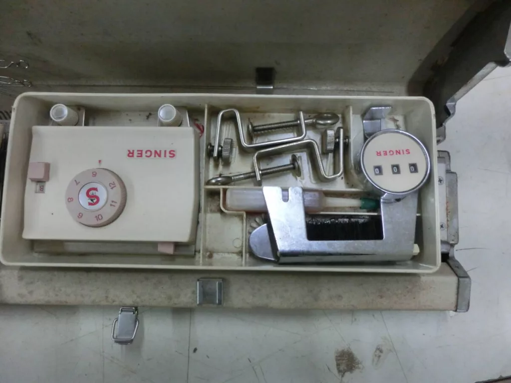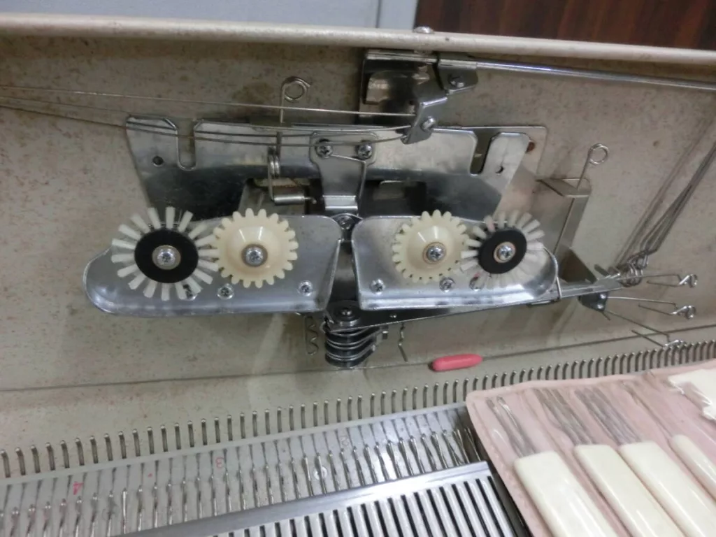 Singer 555 is identical to its Silver SK103 sister except for the color scheme. Thus, read the corresponding ( and a very detailed) post while enjoying the pictures of Singer 555 knitting machine below.
