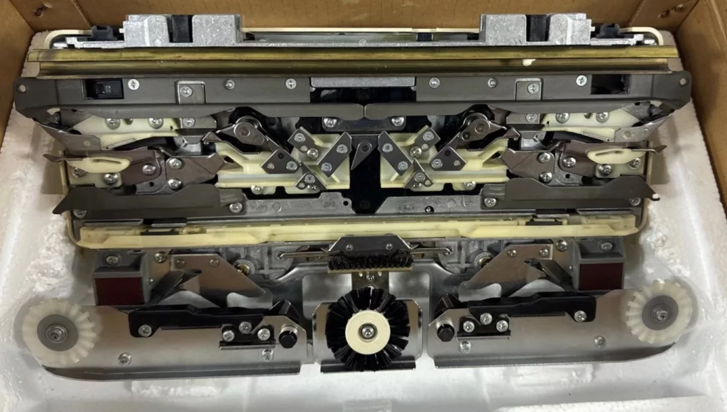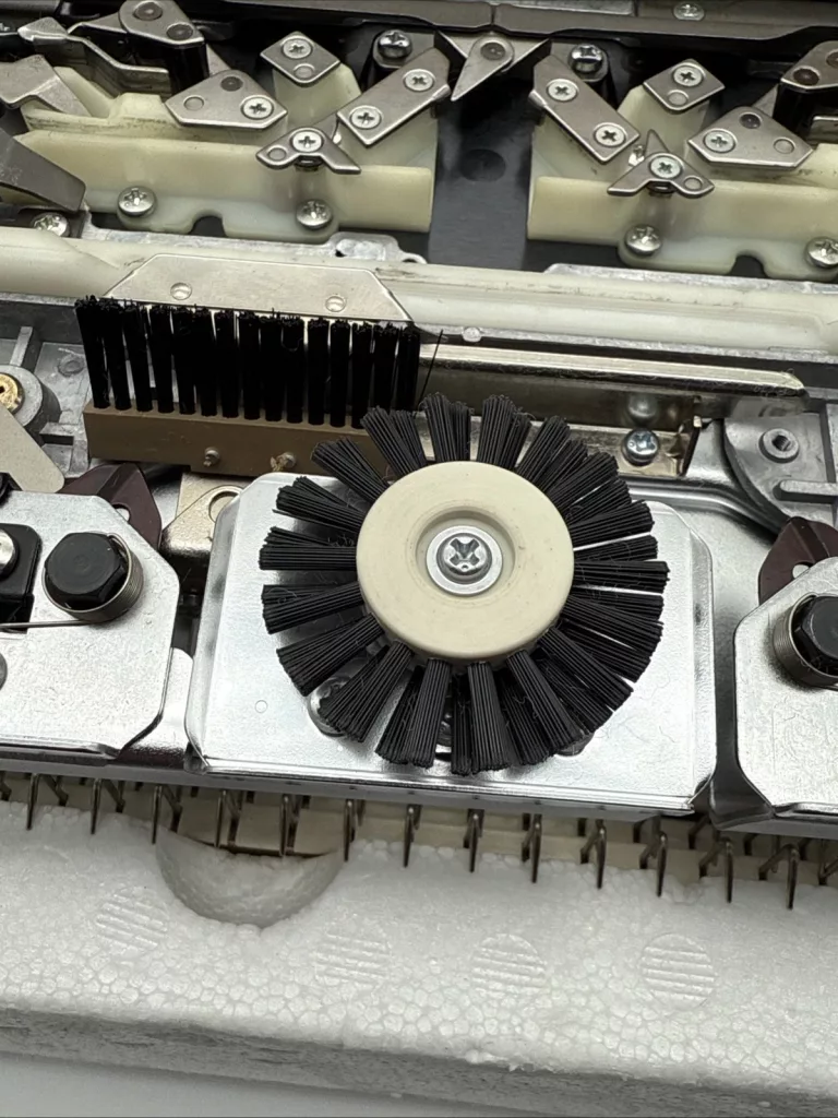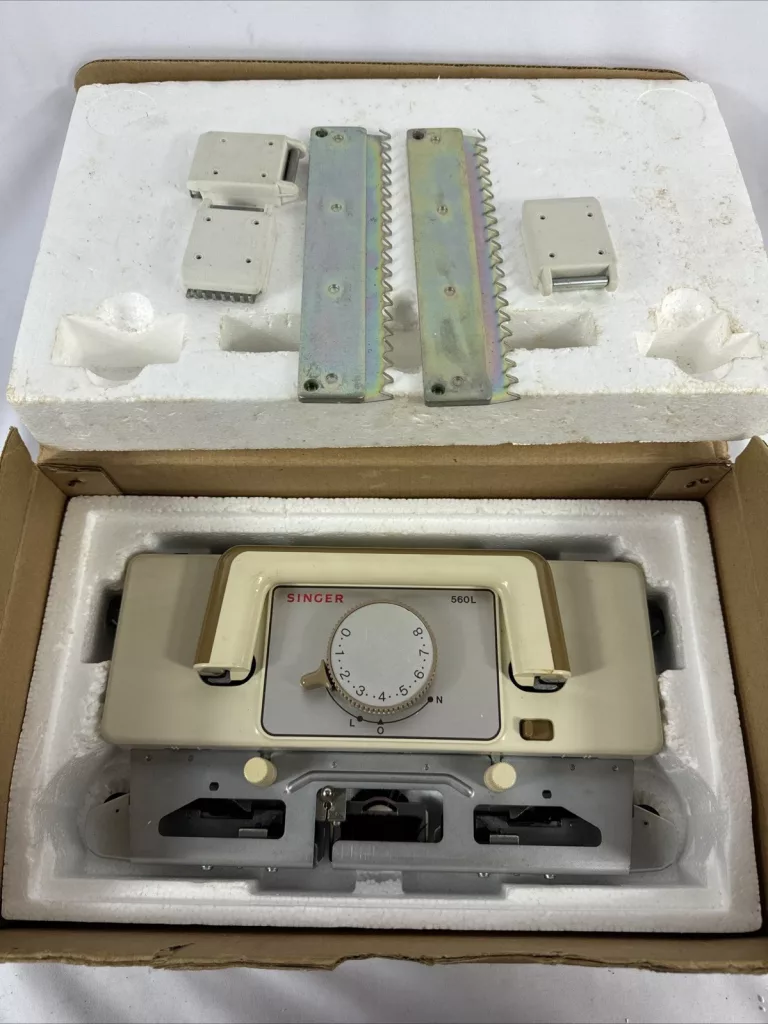 Singer 560L lace carriage fits only electronic machines manufactured by Silver Reed under Silver Reed, Silver, Empisal Knitmaster, Singer and Studio brand names with the model number (SK)560. It no longer has patterning drums, like its predecessors, LC1, LC2 and 360/260L lace carriages. But, similar to those carriages for punchcards, Singer 560L transfers AND knits the stitch at the same time.