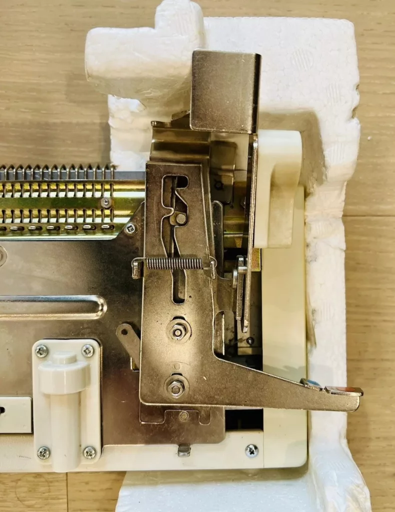 • when the connecting arm is attached to the main carriage, you cannot move the carriage cam from L to stockinet. Just something to be aware of. The manual for the Singer SRP50 mentions it too.