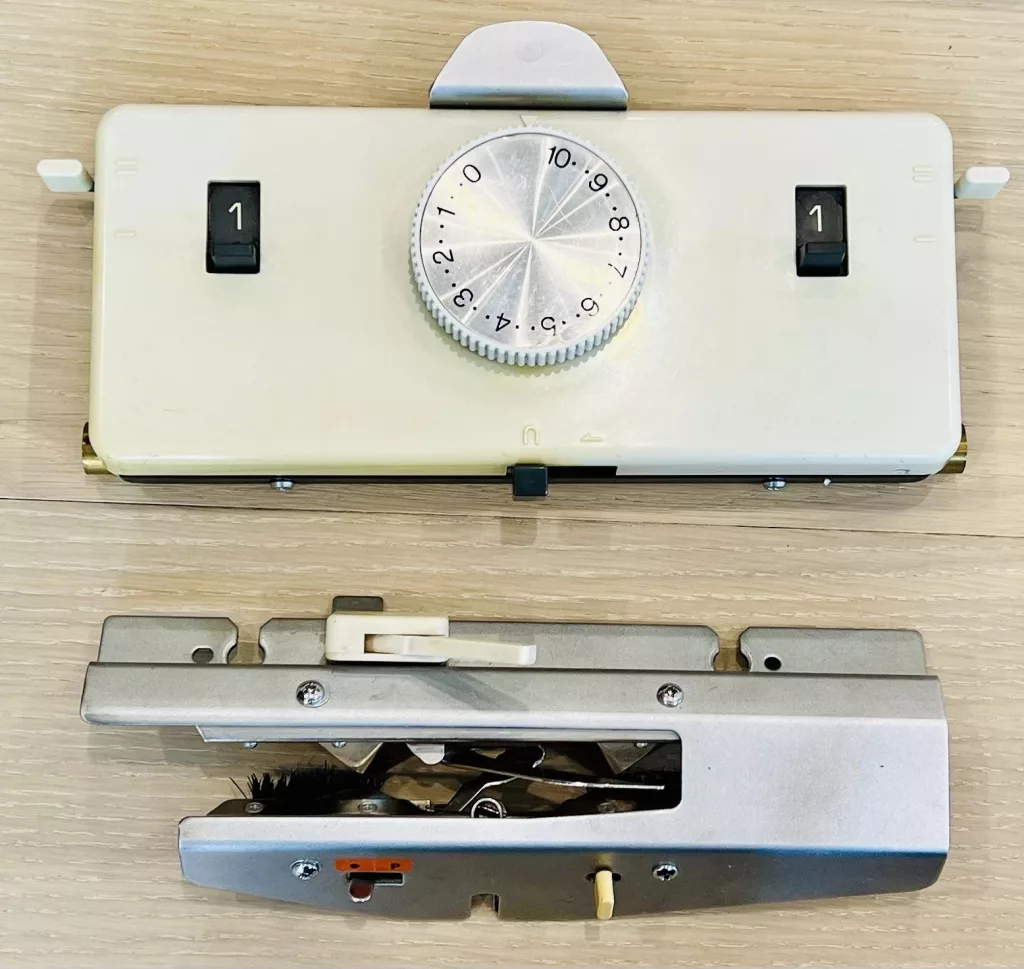 Singer SRP50 ribber, similar to its identical sisters, Empisal Knitmaster SRP50, Studio SRP50, Silver SRP50 and Silver Reed SRP50 is compatible with a wider variety of Singer/Silver Reed/Studio/Empisal/Riccar standard-gauge knitting machines.