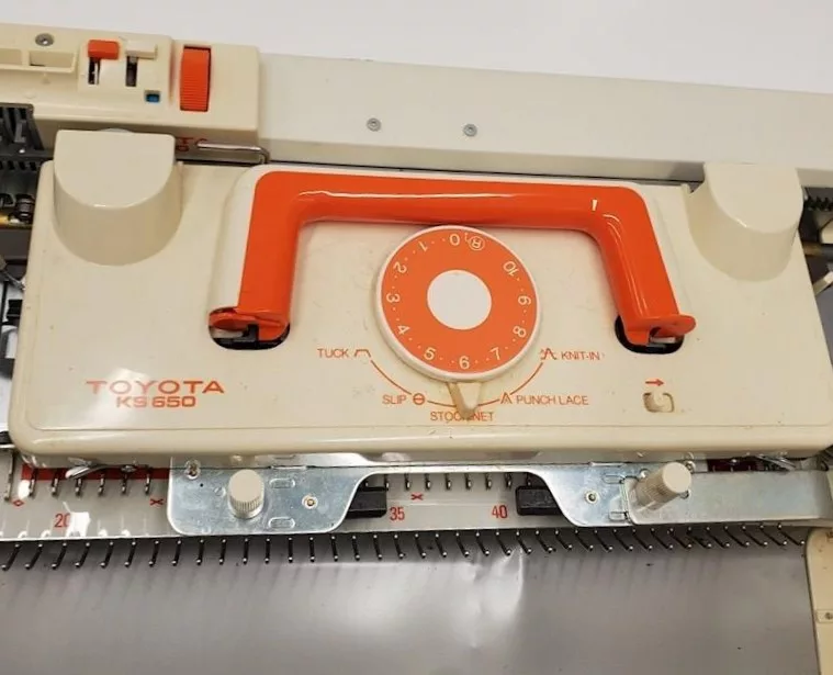 Toyota KS650 accepts punchcards with a 12-stitch repeat pattern. Its patterning mechanism (with drums) is similar to the Silver/Singer/Silver Reed/Studio as well as Empisal/Riccar machines. In fact, the manual for the Toyota KS650 ribber even mentions mod. 155 knitting machine, which is a model number for the similar Sdutio, Singer and Silver Reed bulky machines.